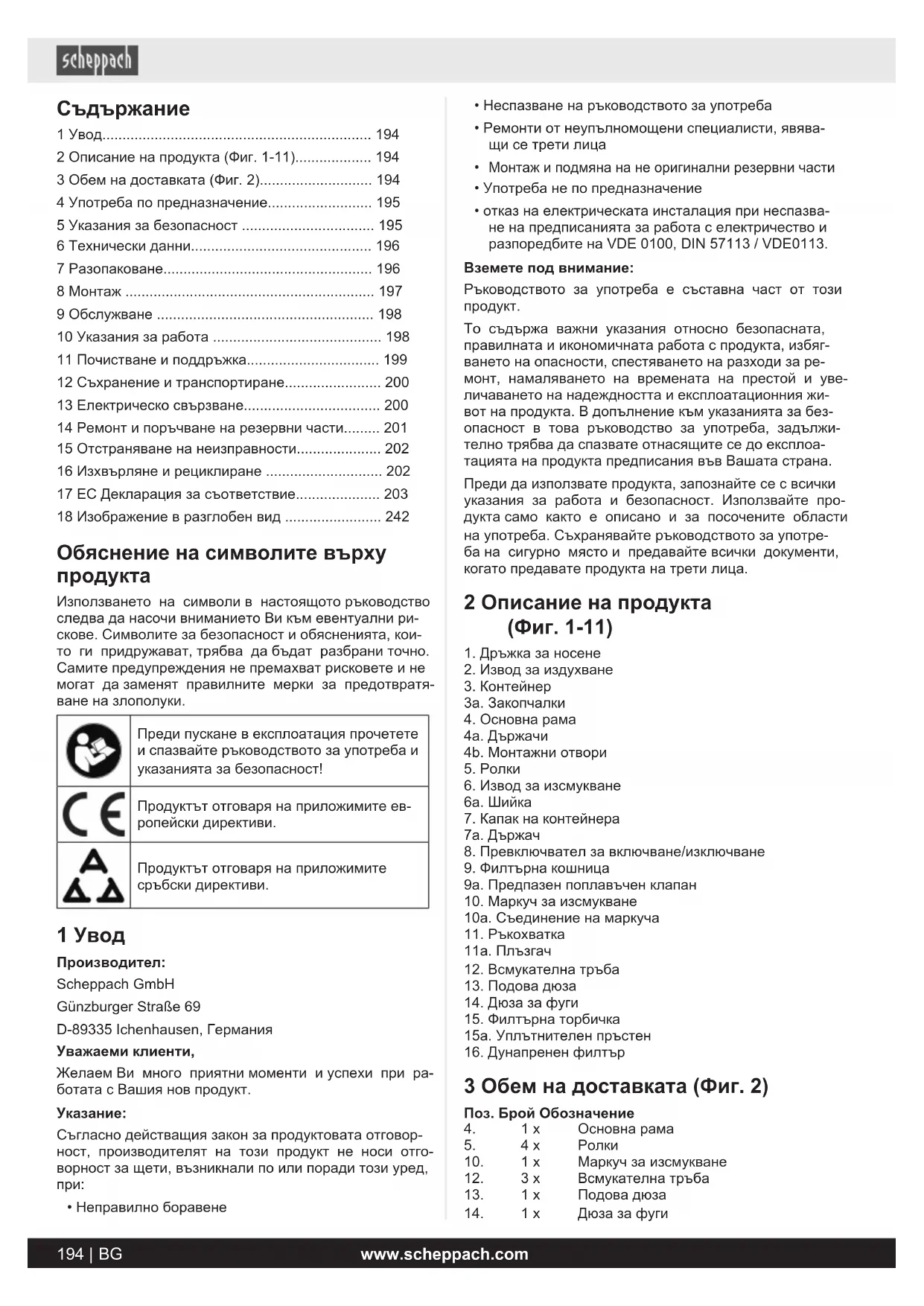 РЪКОВОДСТВО ЗА ПОТРЕБИТЕЛЯ VC25 SCHEPPACH