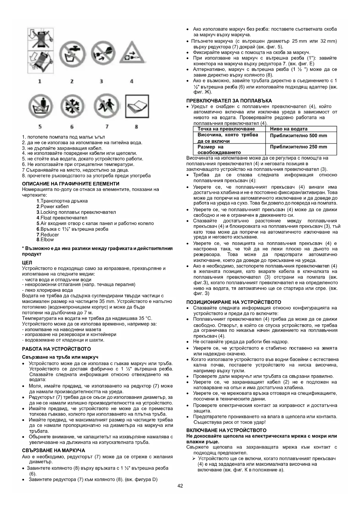 - Устройството не е подходящо за изпомпване на питейна вода.