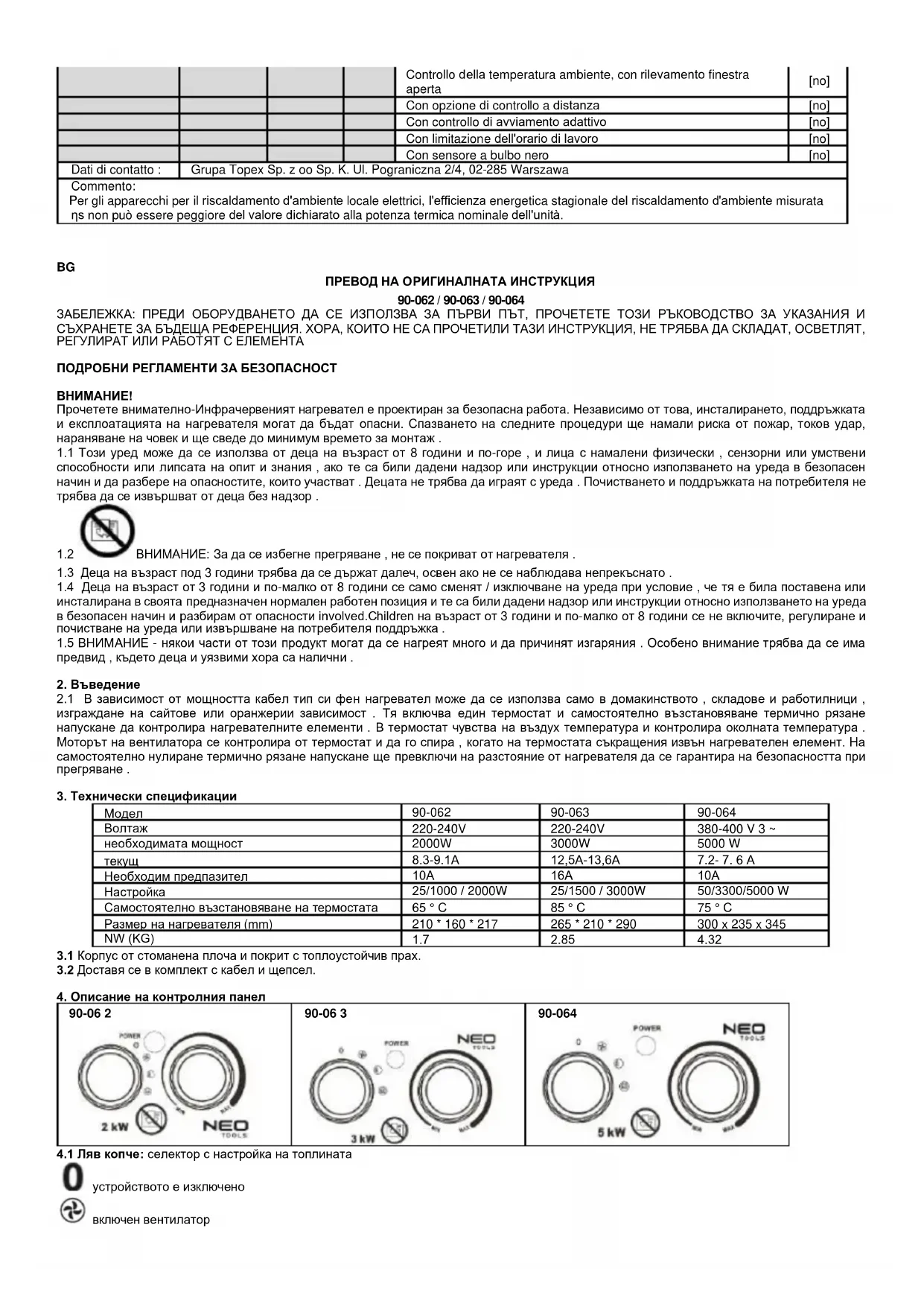 Изтеглете инструкциите за вашия Отопление в PDF формат безплатно! Намерете ръководството си 90063 - NEO tools и вземете отново електронното си устройство в ръце. На тази страница са публикувани всички документи, необходими за използването на вашето устройство. 90063 на марката NEO tools.