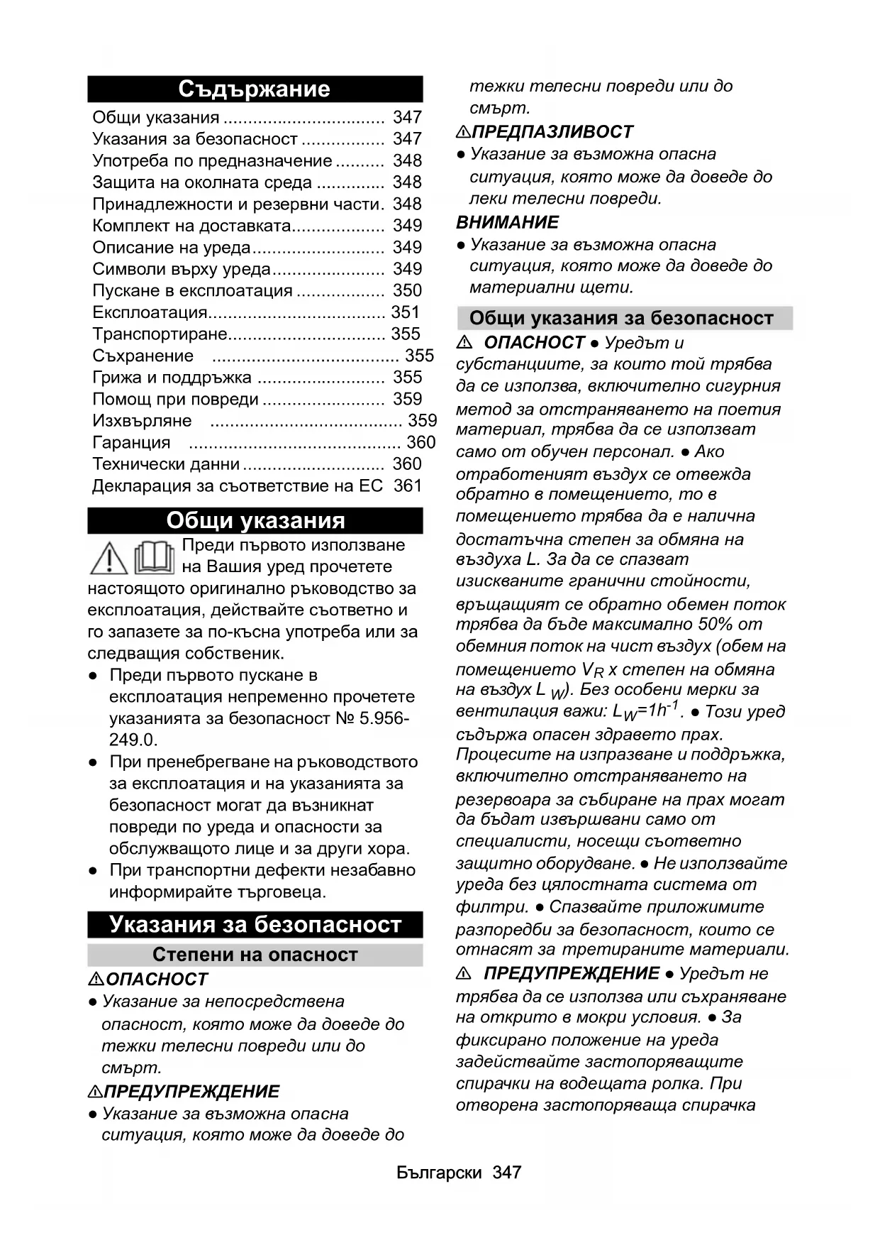 - Указания за безопасност p. 347