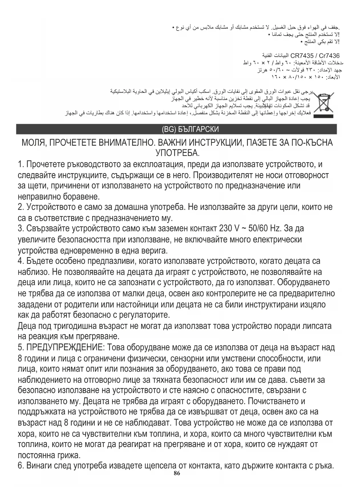 РЪКОВОДСТВО ЗА ПОТРЕБИТЕЛЯ CR 7436 CAMRY