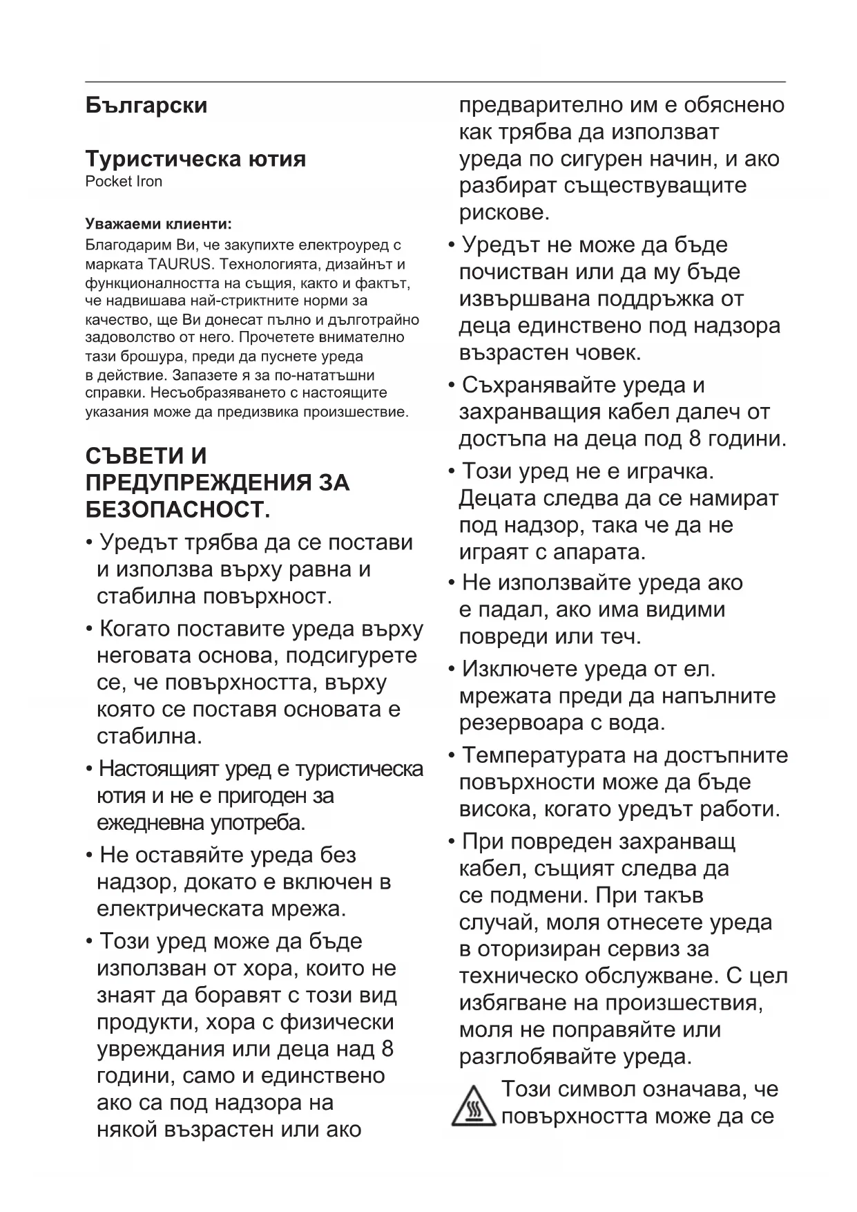 Pocket Iron - ютия TAURUS - Безплатно ръководство за потребителя