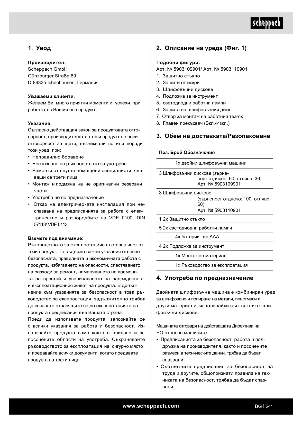 РЪКОВОДСТВО ЗА ПОТРЕБИТЕЛЯ SM200AL SCHEPPACH
