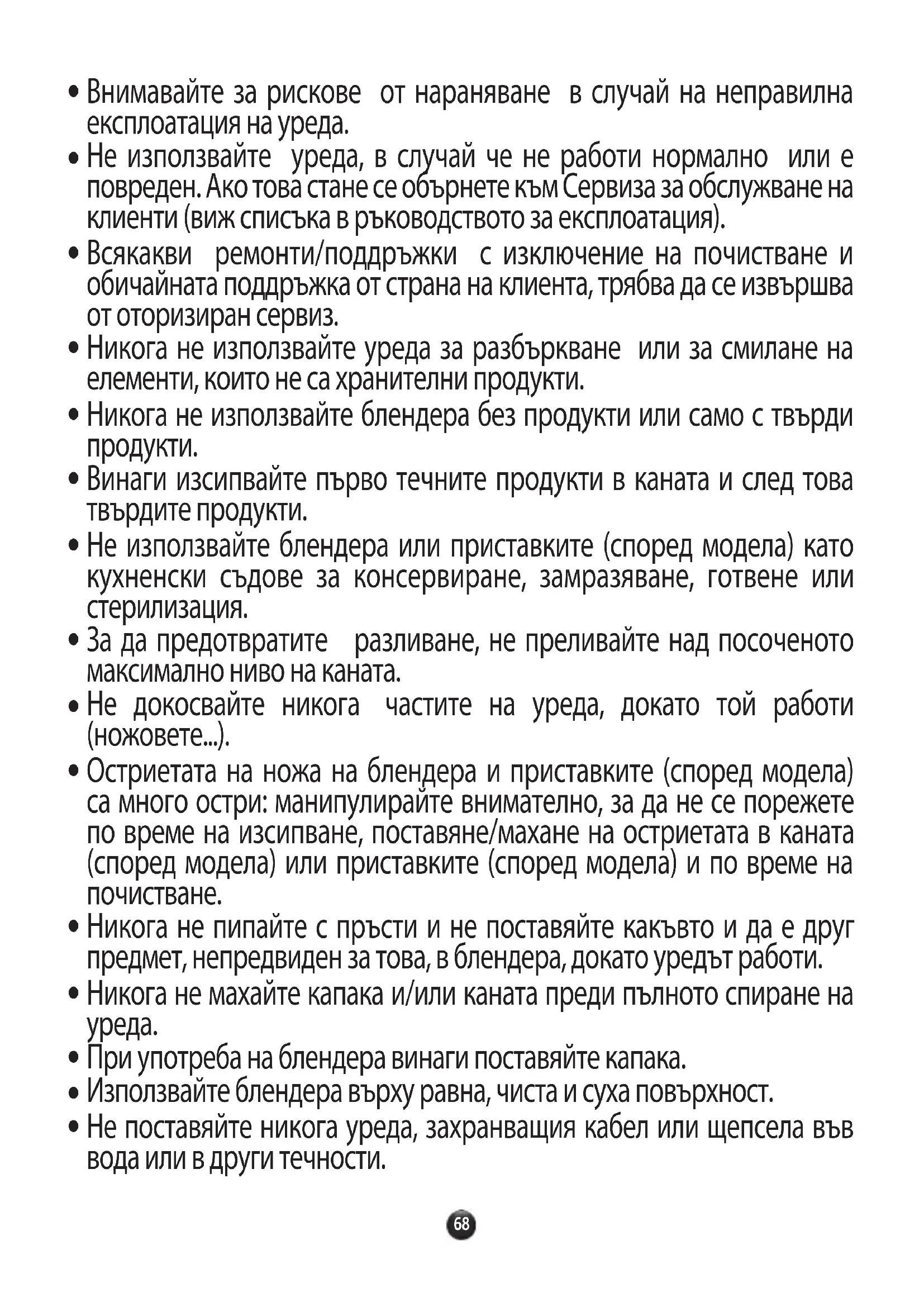 Никога не пипайте с пръсти и не поставяйте какъвто и да е друг предмет, непредвиден за това, в блендера, докато уредът работи.