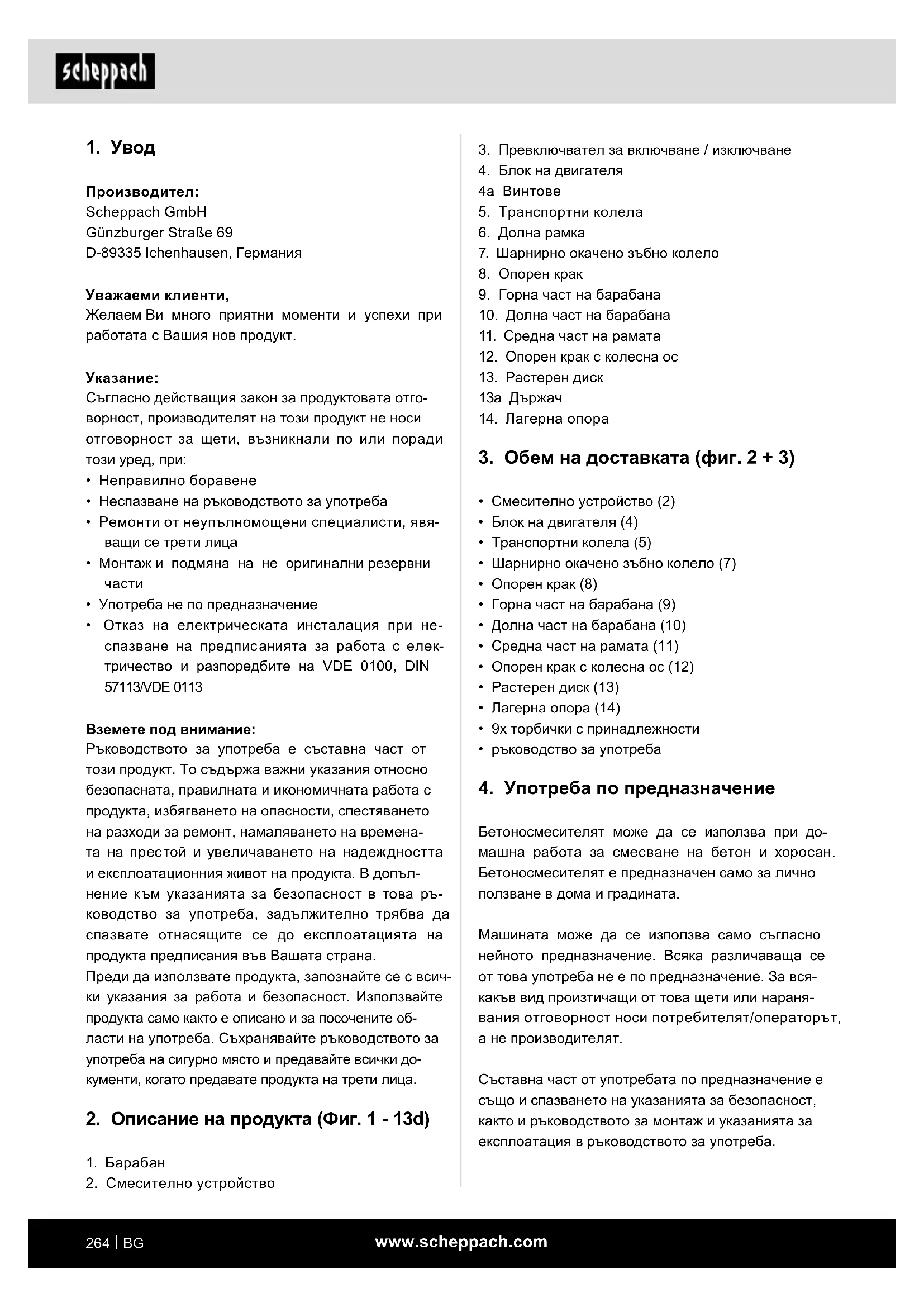 MIX140 - циментов миксер SCHEPPACH - Безплатно ръководство за потребителя