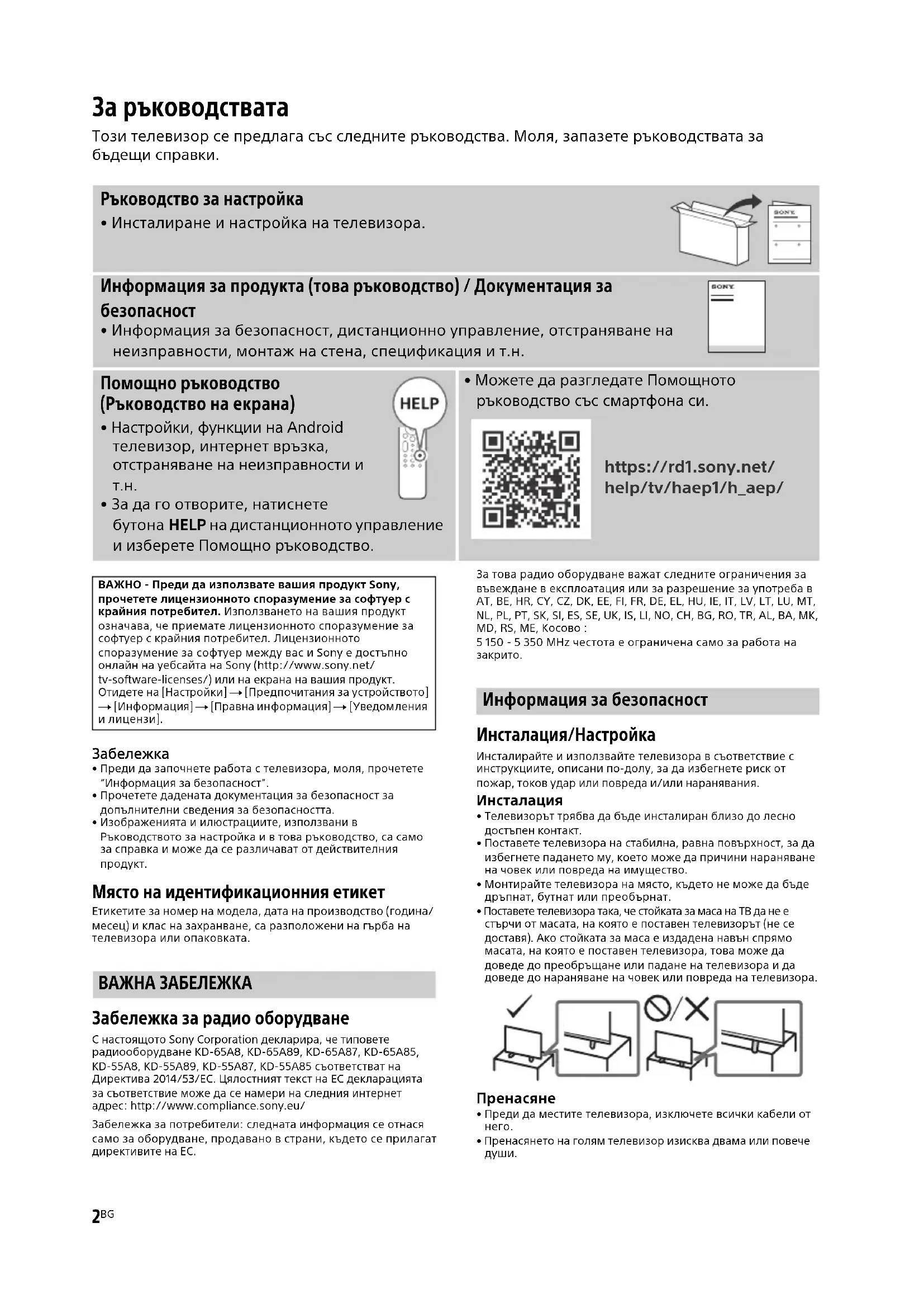 РЪКОВОДСТВО ЗА ПОТРЕБИТЕЛЯ KD65A85 SONY