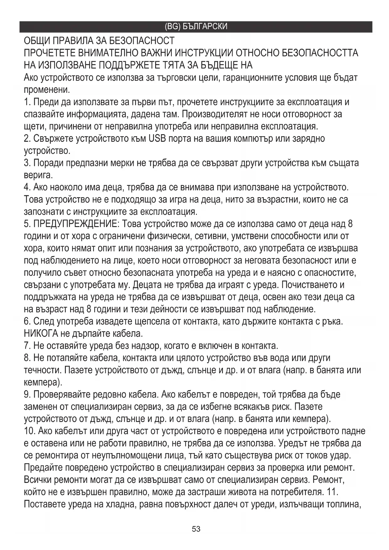 5. ПРЕДУПРЕЖДЕНИЕ: Това устройство може да се използва само от деца над 8