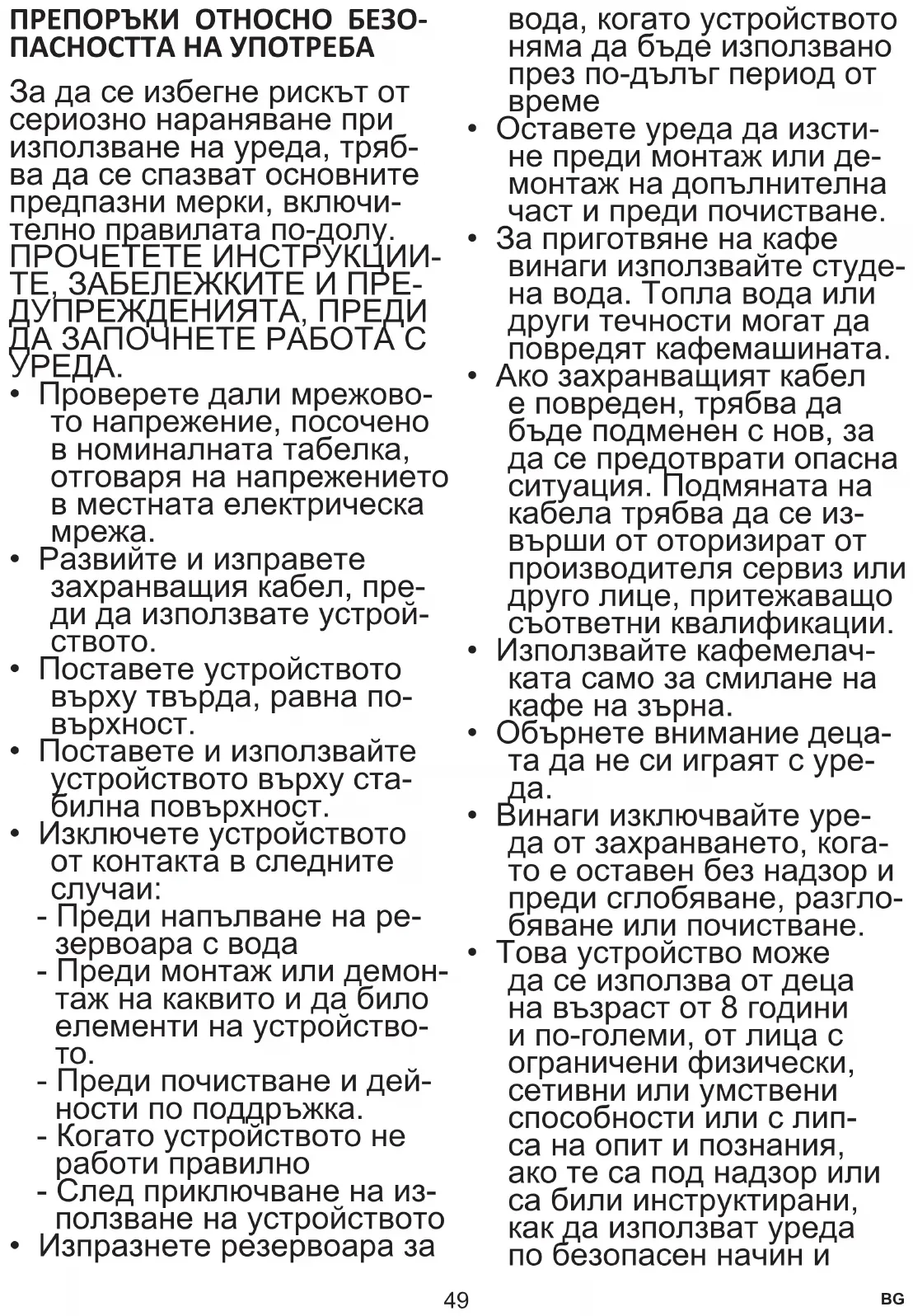 - Децата не са наясно с опасностите, които могат да възникнат при използ- ване на електрически уре- ди, затова пазете кафема- шината далеч от достъпа