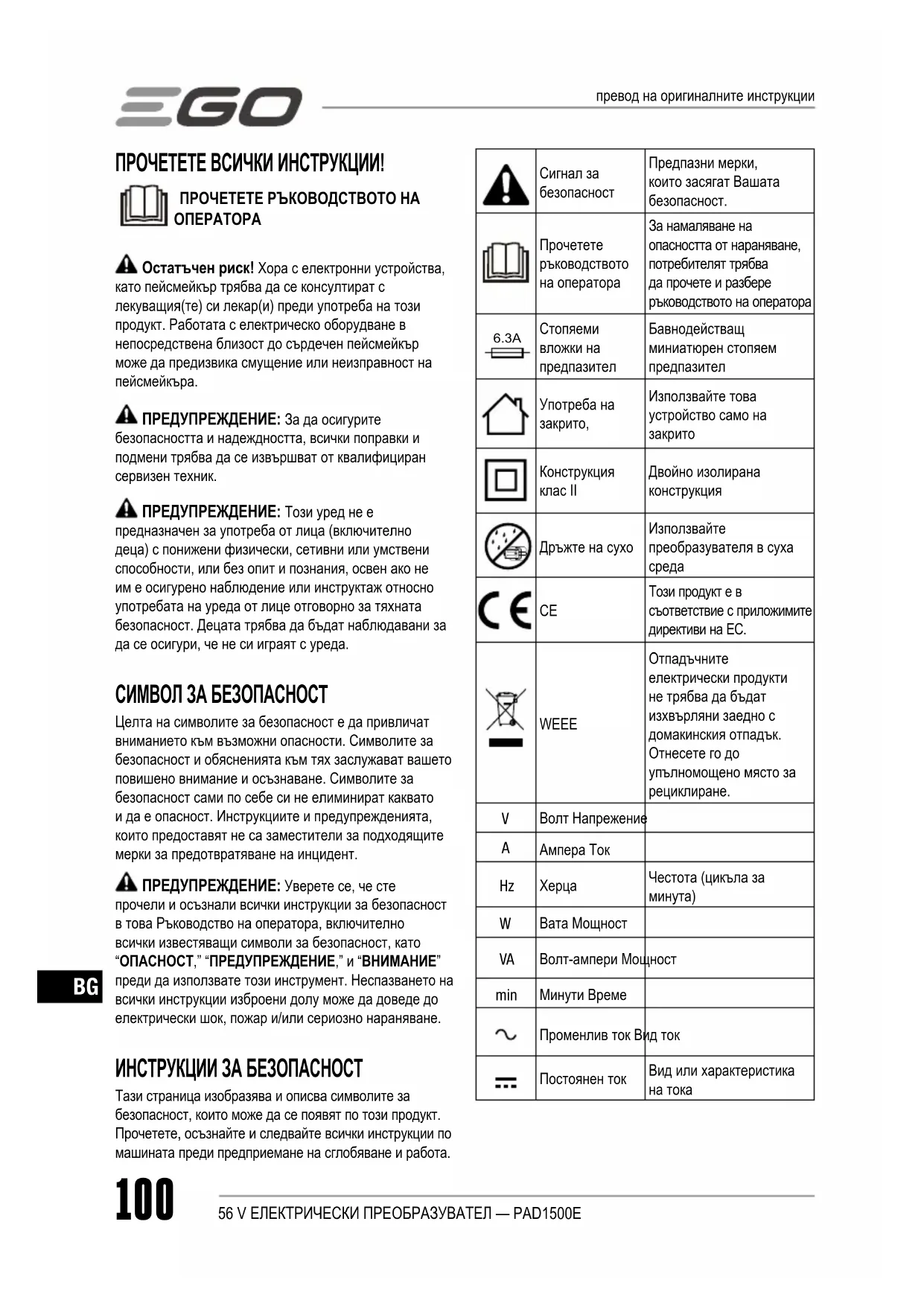 РЪКОВОДСТВО ЗА ПОТРЕБИТЕЛЯ PAD1500E EGO