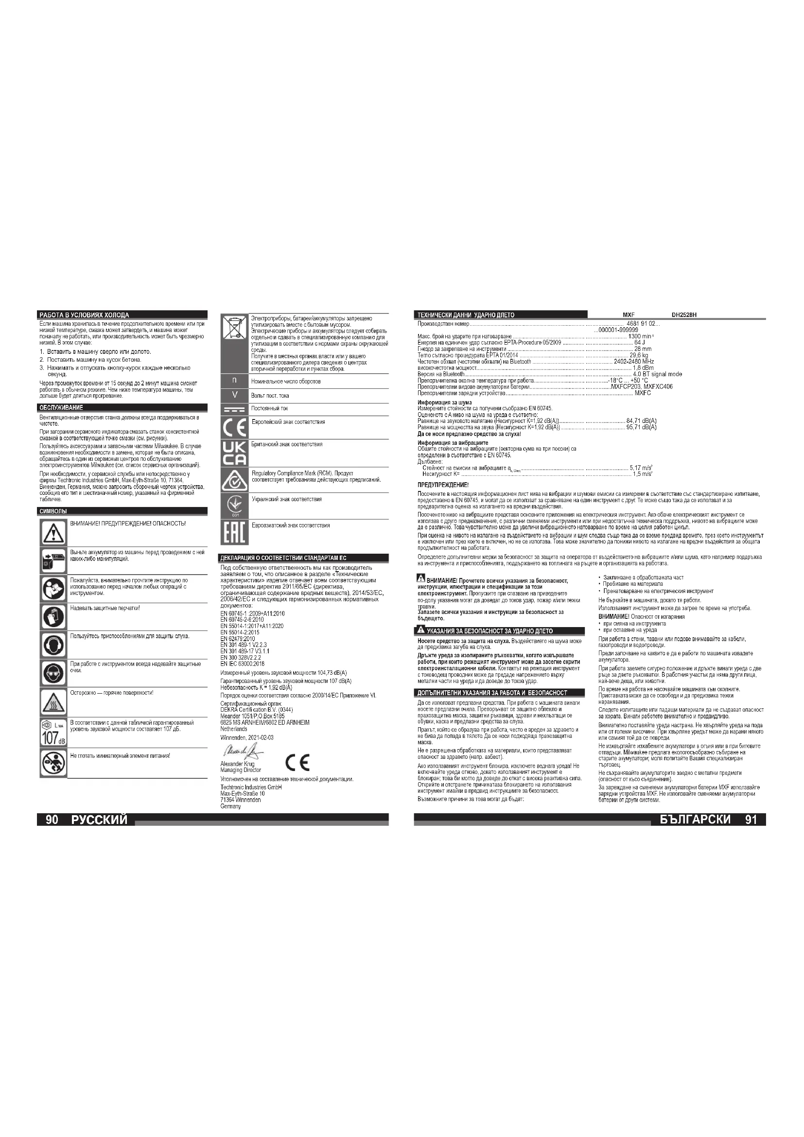 РЪКОВОДСТВО ЗА ПОТРЕБИТЕЛЯ MXF DH2528H602 MX MILWAUKEE