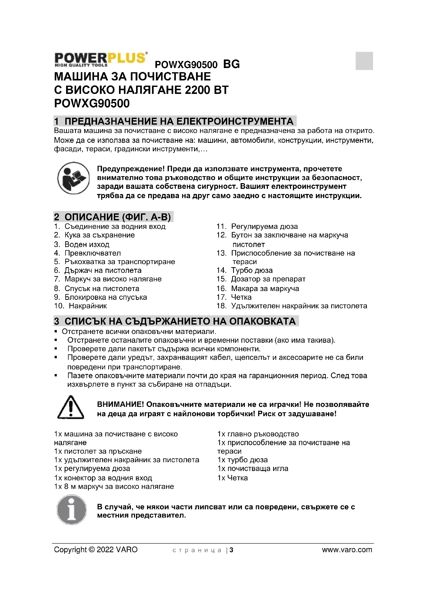РЪКОВОДСТВО ЗА ПОТРЕБИТЕЛЯ POWXG90500 PowerPlus