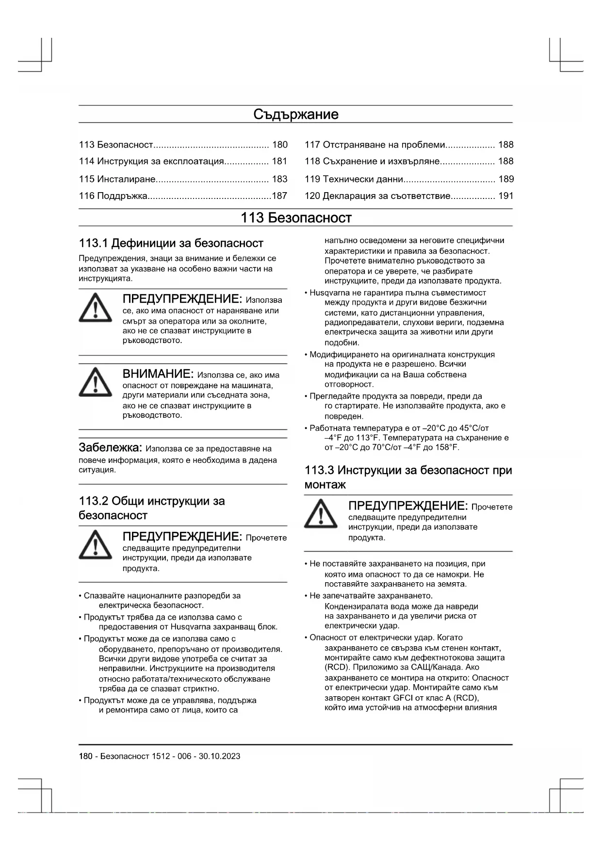 188 - Отстраняване на проблеми 1512 - 006 - 30.10.2023119 Технически данни