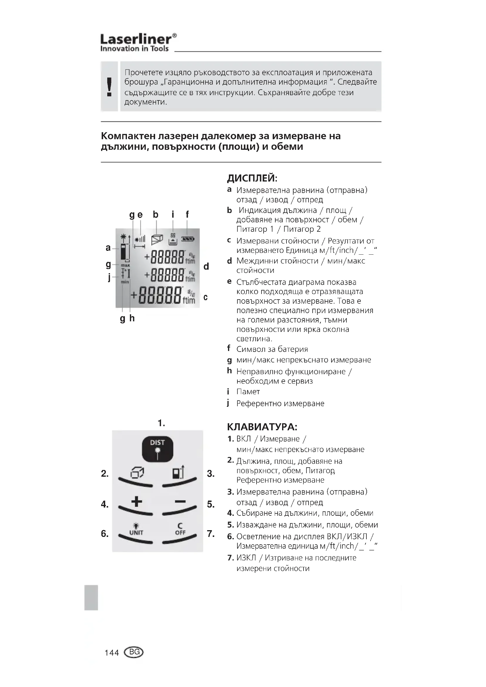 РЪКОВОДСТВО ЗА ПОТРЕБИТЕЛЯ DistanceMaster Pocket Laserliner