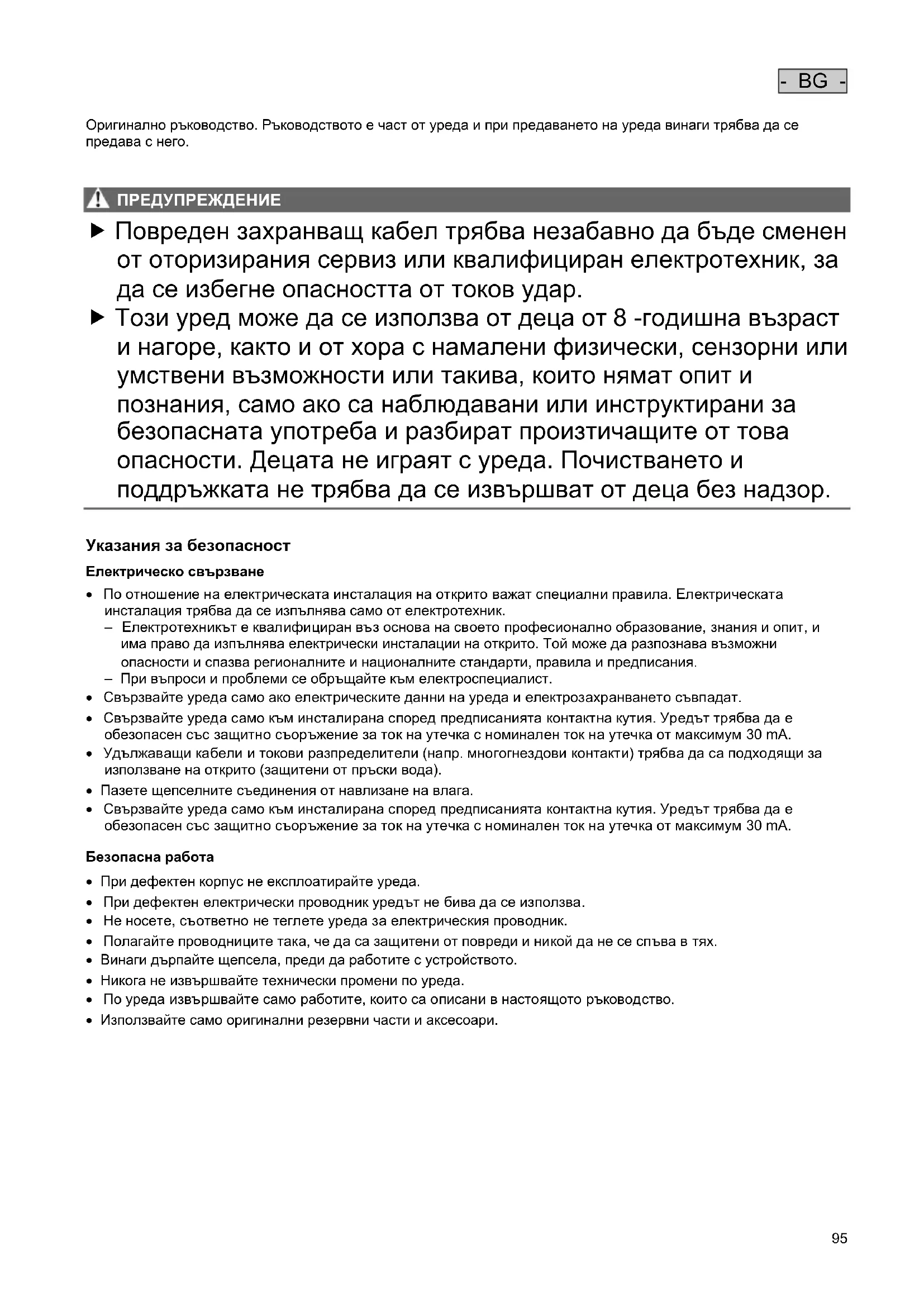 - BG - Оригинално ръководство. Ръководството е част от уреда и при предаването на уреда винаги трябва да се предава с него.