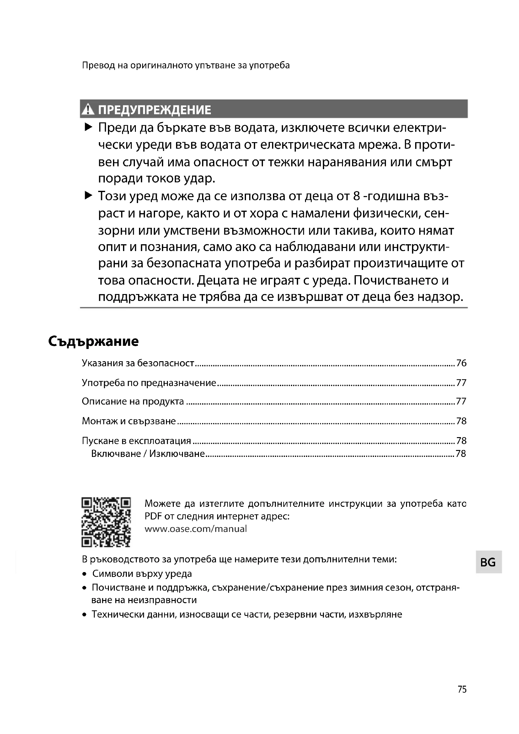 - При проблеми се обърнете към оторизирания сервиз или към OASE.BG
