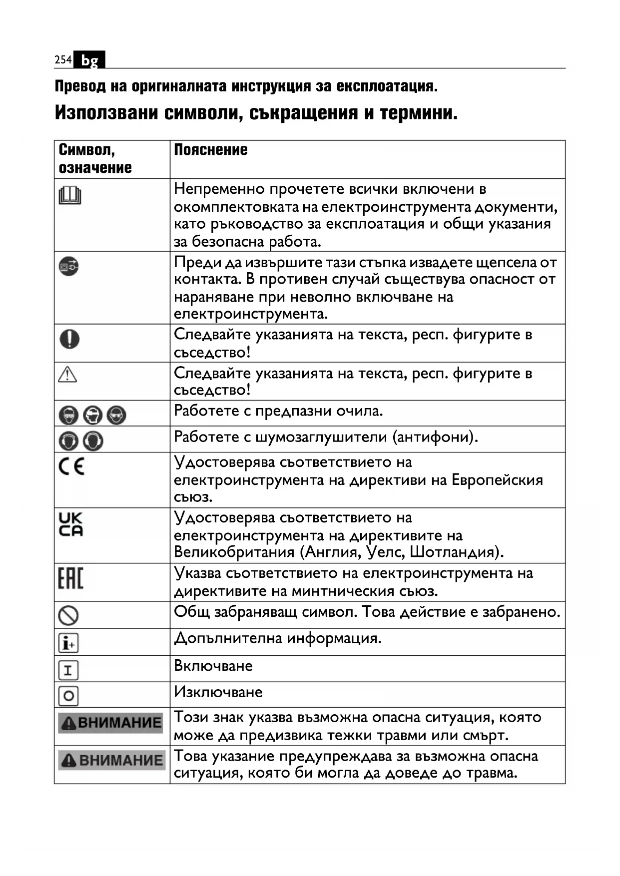 Превод на оригиналната инструкция за експлоатация. Използвани символи, съкращения и термини.