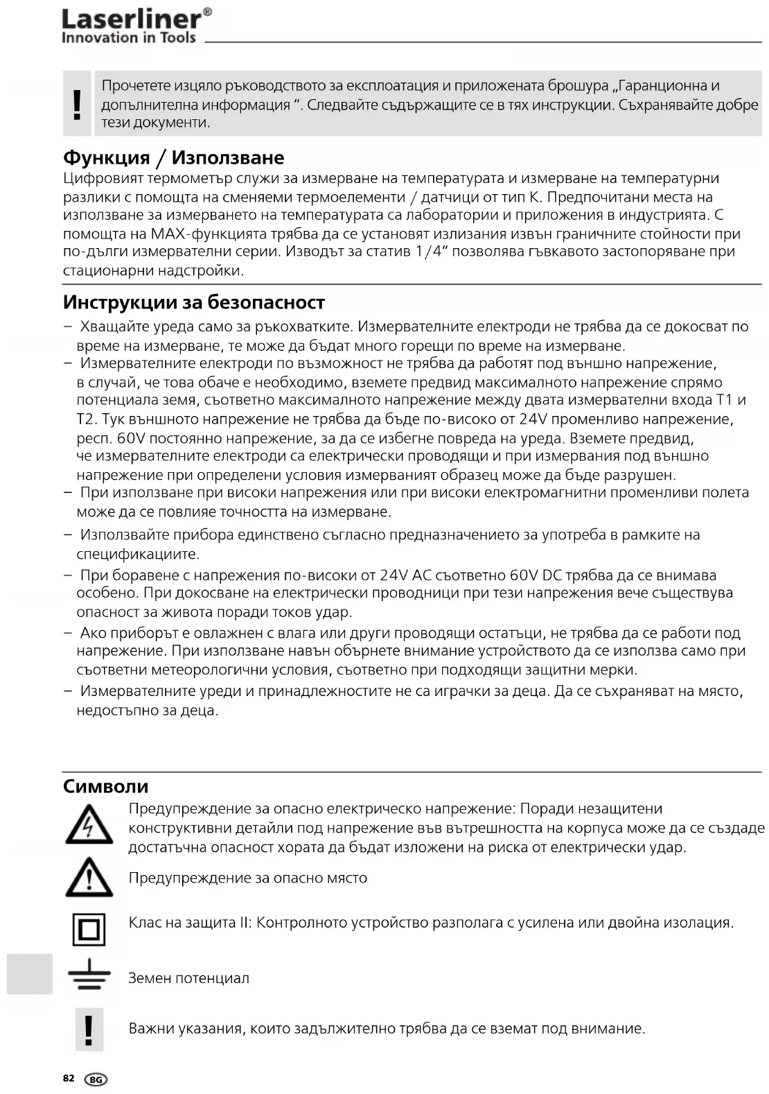 РЪКОВОДСТВО ЗА ПОТРЕБИТЕЛЯ ThermoMaster Laserliner