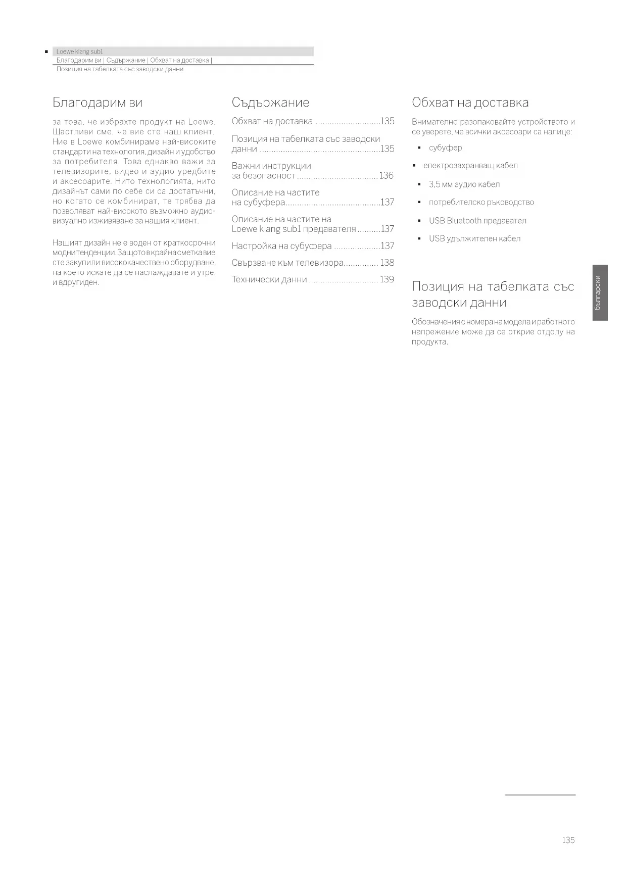 РЪКОВОДСТВО ЗА ПОТРЕБИТЕЛЯ Klang sub1 LOEWE