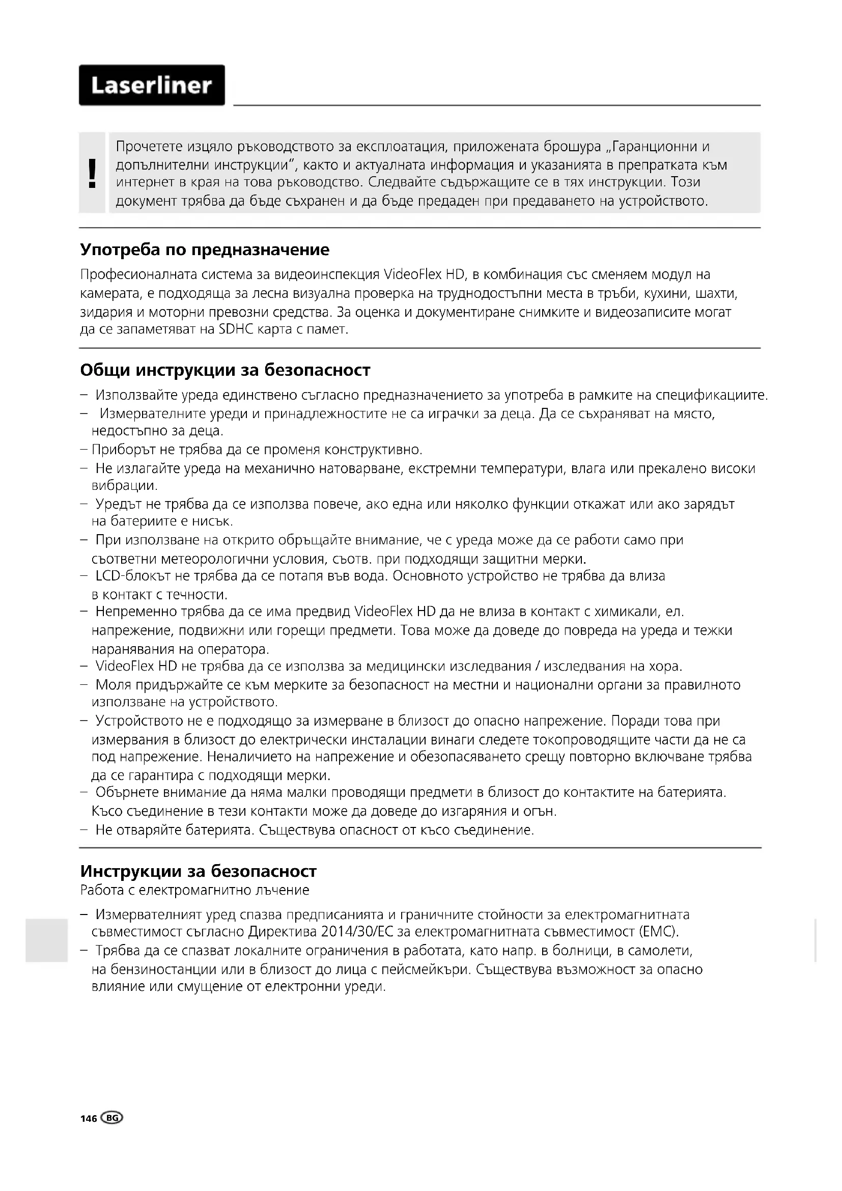 РЪКОВОДСТВО ЗА ПОТРЕБИТЕЛЯ VideoFlex HD Duo Laserliner