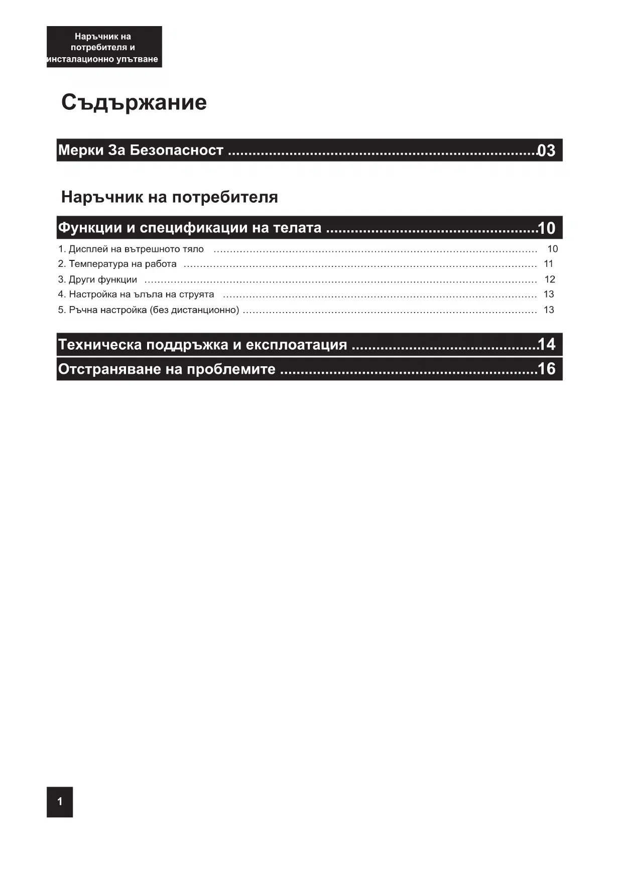 5. Ръчна настройка (без дистанционно) ……………………………………………………………………………… 13