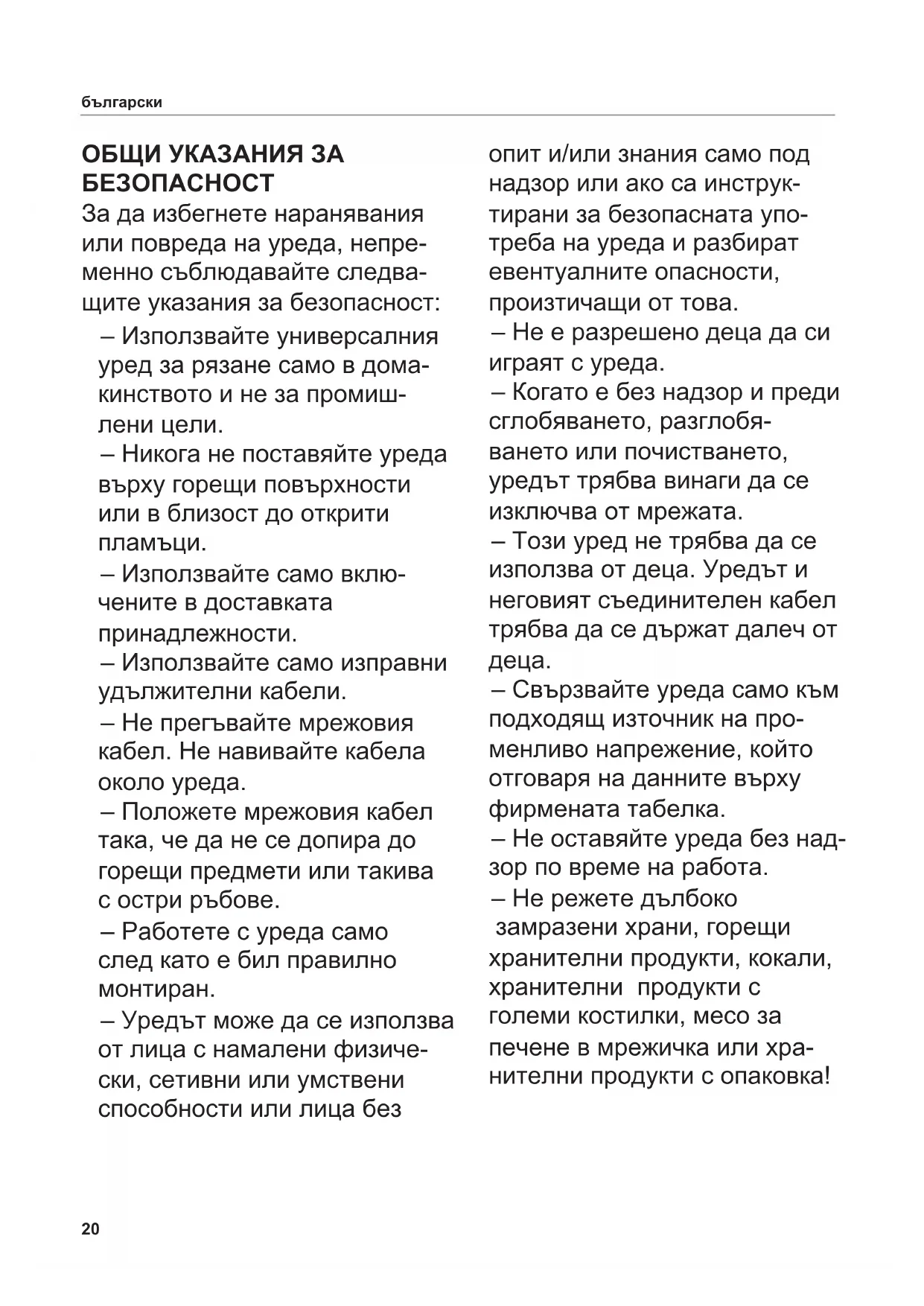 ОБЩИ УКАЗАНИЯ ЗА БЕЗОПАСНОСТ За да избегнете наранявания или повреда на уреда, непре- менно съблюдавайте следва- щите указания за безопасност: – Използвайте универсалния уред за рязане само в дома- кинството и не за промиш-