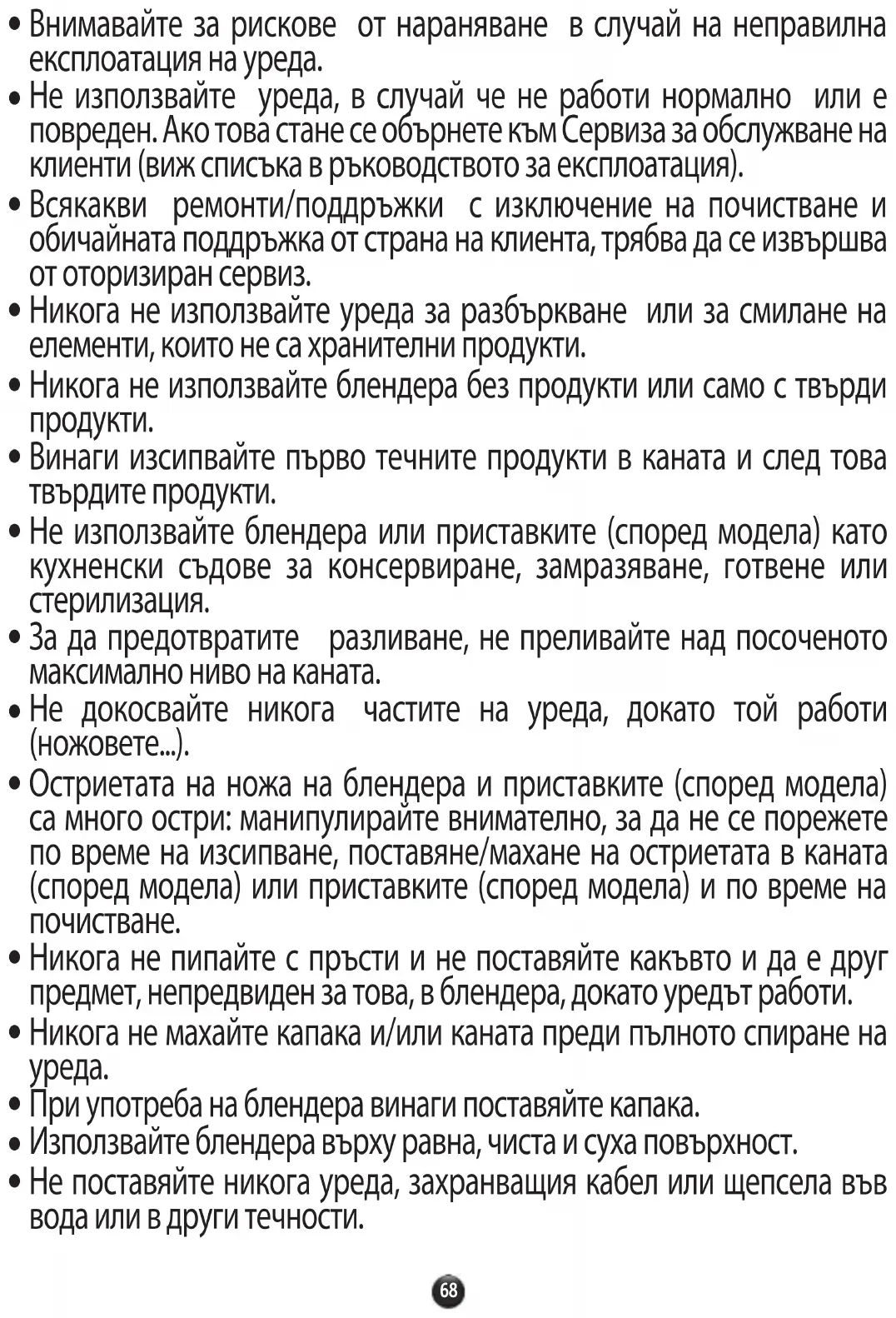 Не използвайте блендера или приставките (според модела) като кухненски съдове за консервиране, замразяване, готвене или стерилизация.
