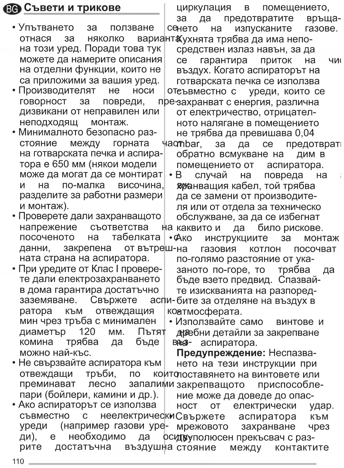 - Несвързвайтеаспираторакъм отвеждащи тръби, по които преминават лесно запалими пари(бойлери,каминиидр.).