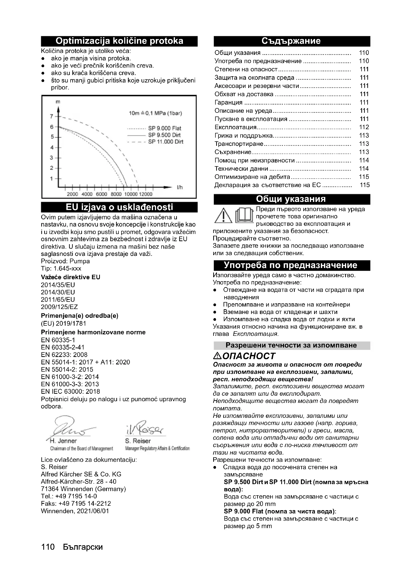 - Вода със степен на замърсяване с частици с размер до 20 mm SP 9.000 Flat (помпа за чиста вода): Вода със степен на замърсяване с частици с размер до 5 mm Общи указания p. 110