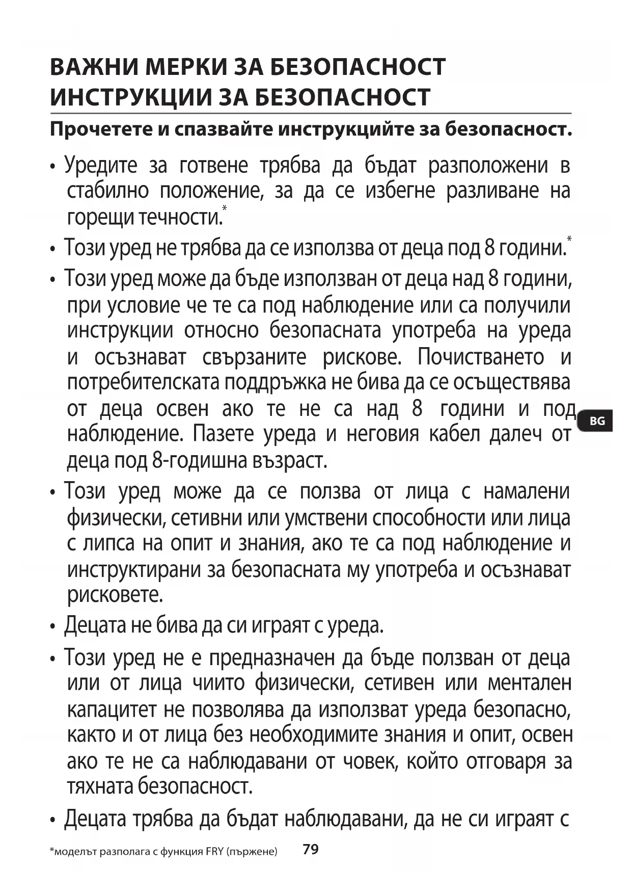 - Децата трябва да бъдат наблюдавани, да не си играят с *моделът разполага с функция FRY (пържене)80