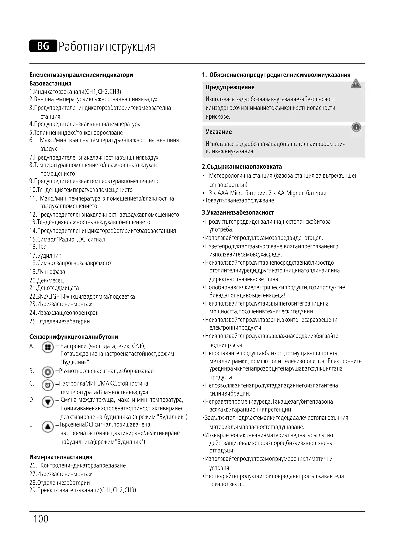 - Обърнете внимание на това, че след всяка смяна на батериите на измервателната станция или на базовата станция трябва да се извърши нова синхронизация на