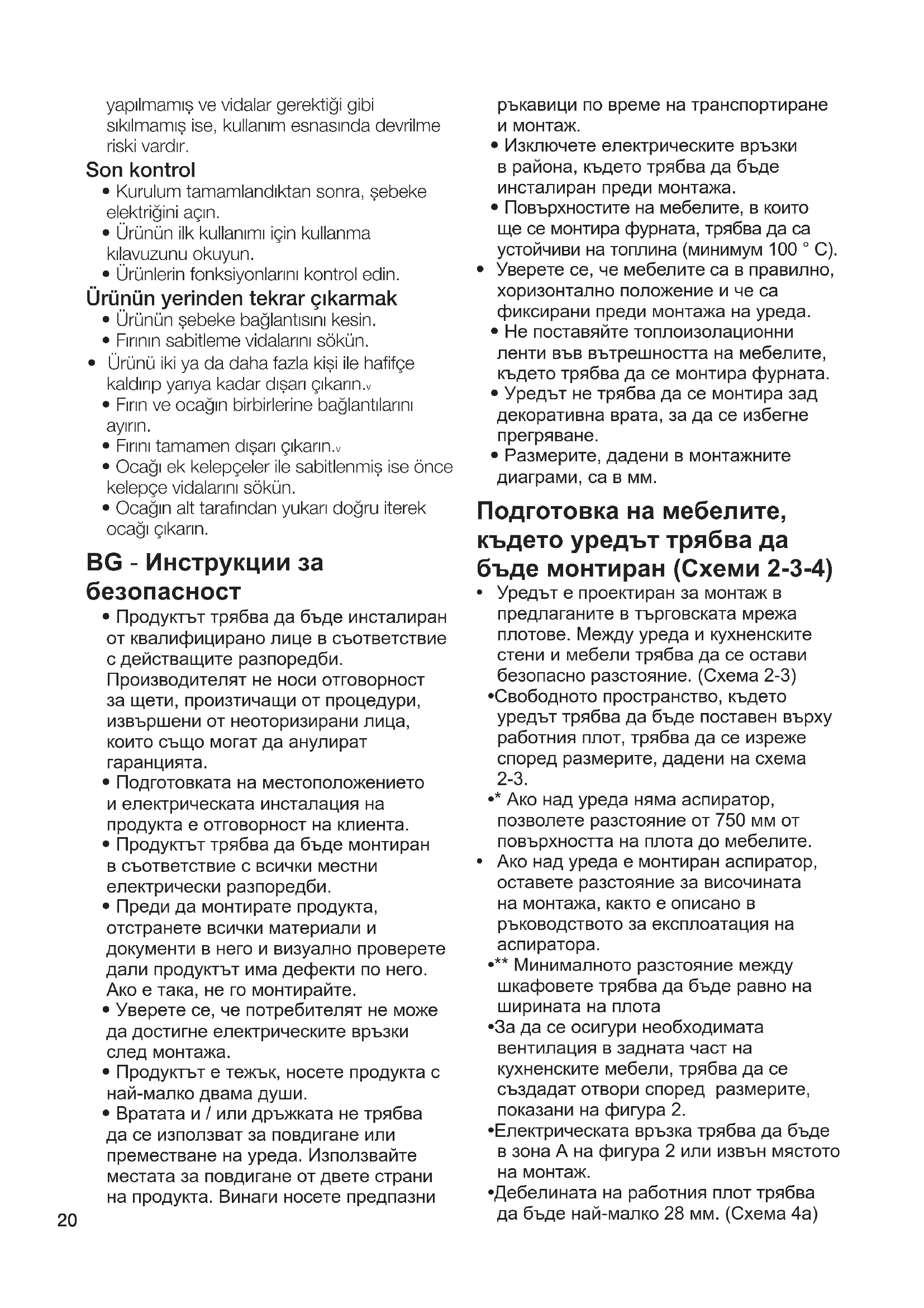 - Уредът е проектиран за монтаж в предлаганите в търговската мрежа плотове. Между уреда и кухненските стени и мебели трябва да се остави безопасно разстояние. (Схема 2-3)