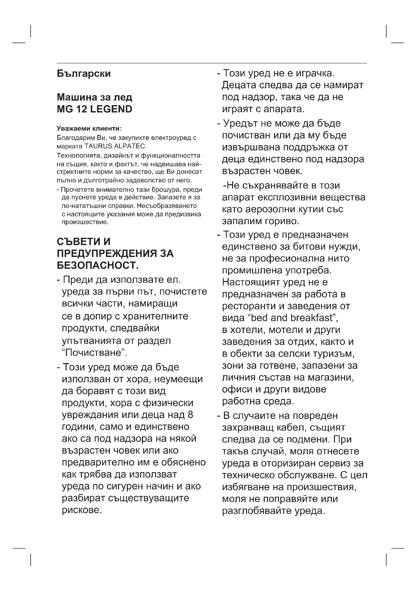 РЪКОВОДСТВО ЗА ПОТРЕБИТЕЛЯ MG 12 Legend TAURUS