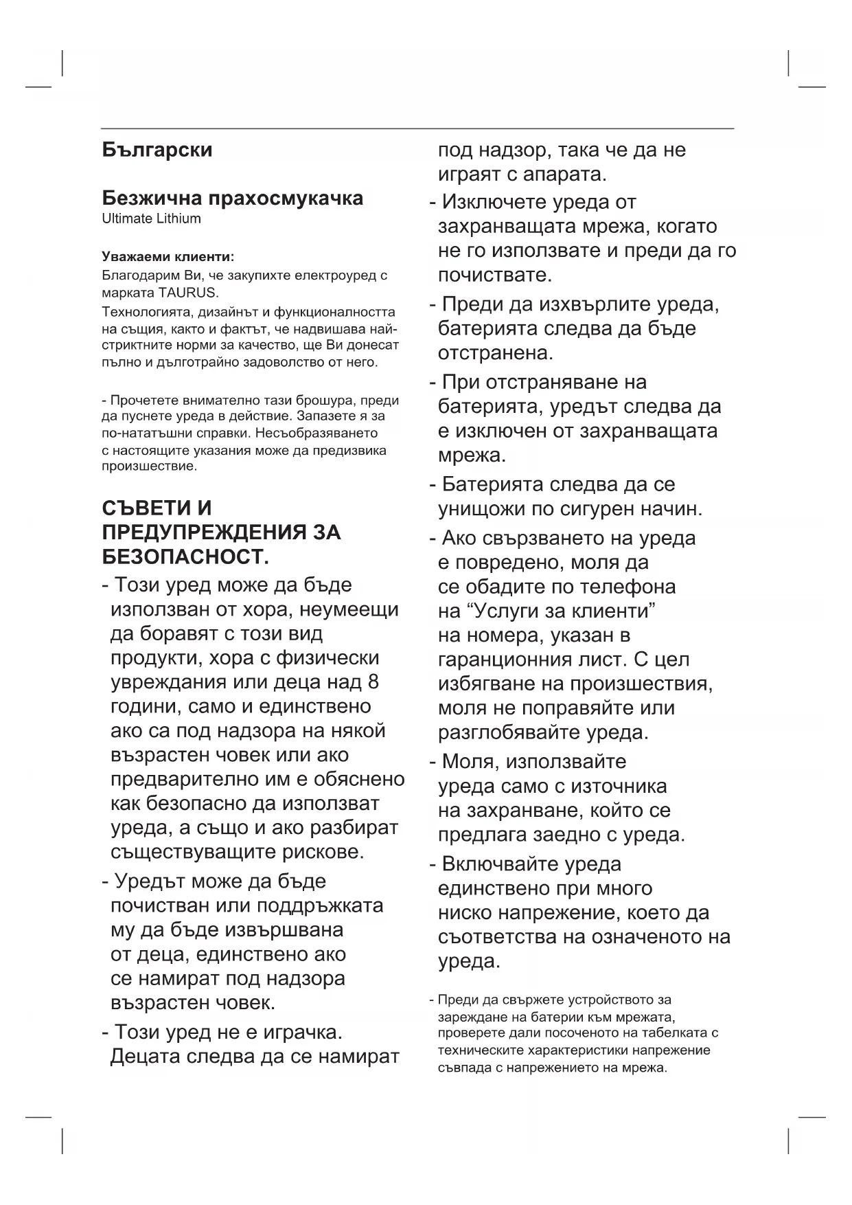 Ultimate Lithium - Прахосмукачка TAURUS - Безплатно ръководство за потребителя