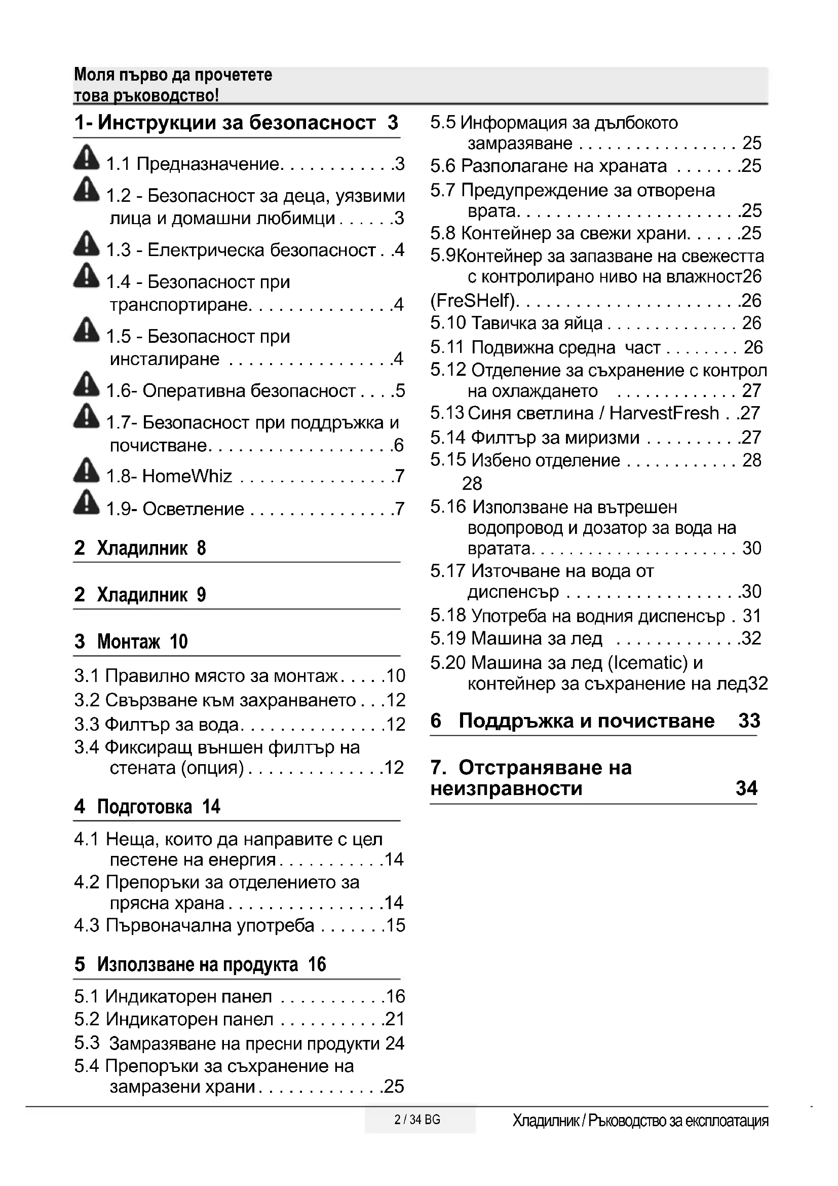 неизправности 34 Моля първо да прочетете това ръководство!3/ 34 BGХладилник / Ръководство за експлоатация