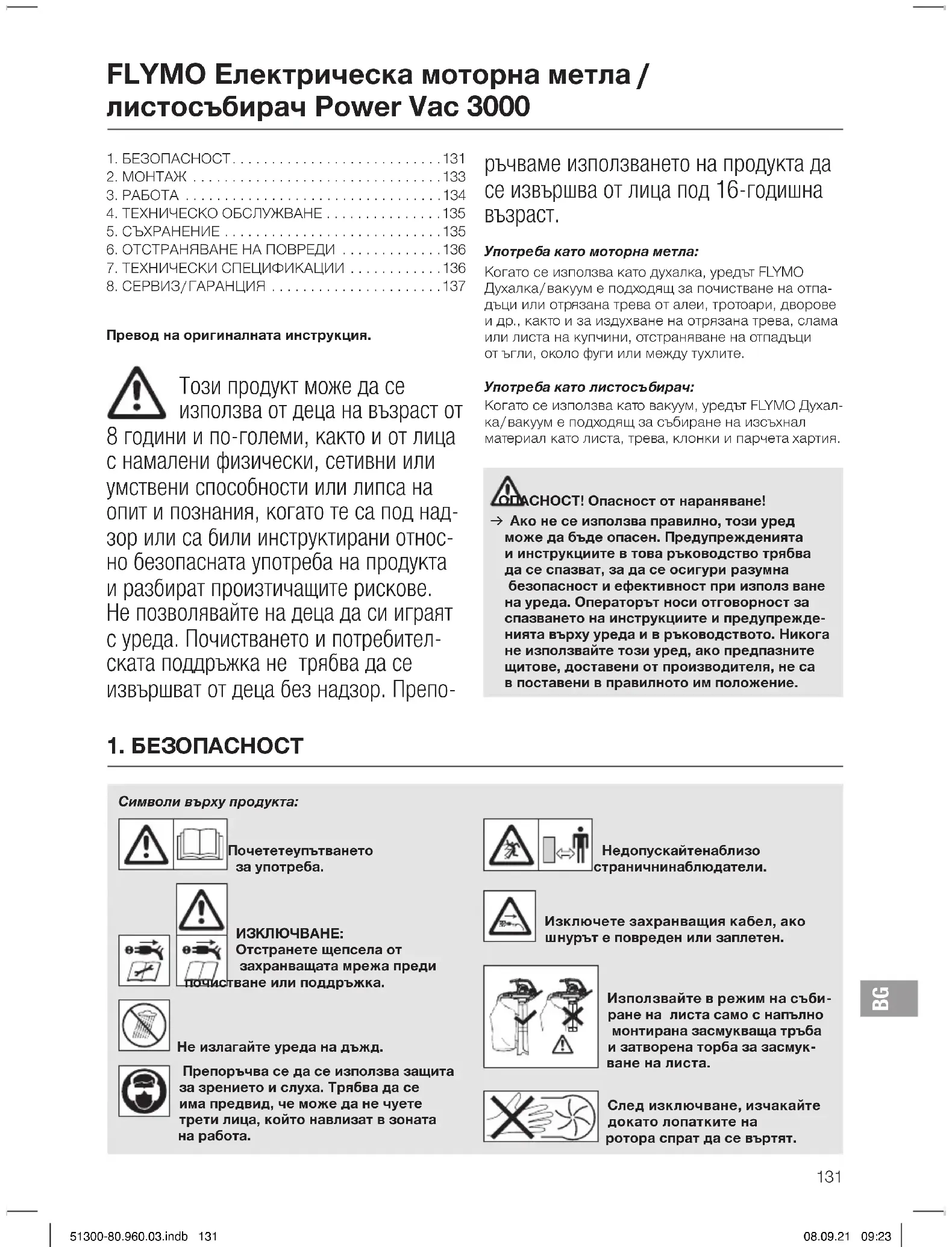 ПРОЧЕТЕТЕ ВНИМАТЕЛНО ПРЕДИ УПОТРЕБА. ЗАПАЗЕТЕ ЗА ВАШАТА ДОКУМЕНТАЦИЯ. 2 Безопасна експлоатация за ръчни, захранва- ни от мрежата електрически листосъбирачи, моторни метли / листосъбирачи със или без режещ механизъм и духалка за листа