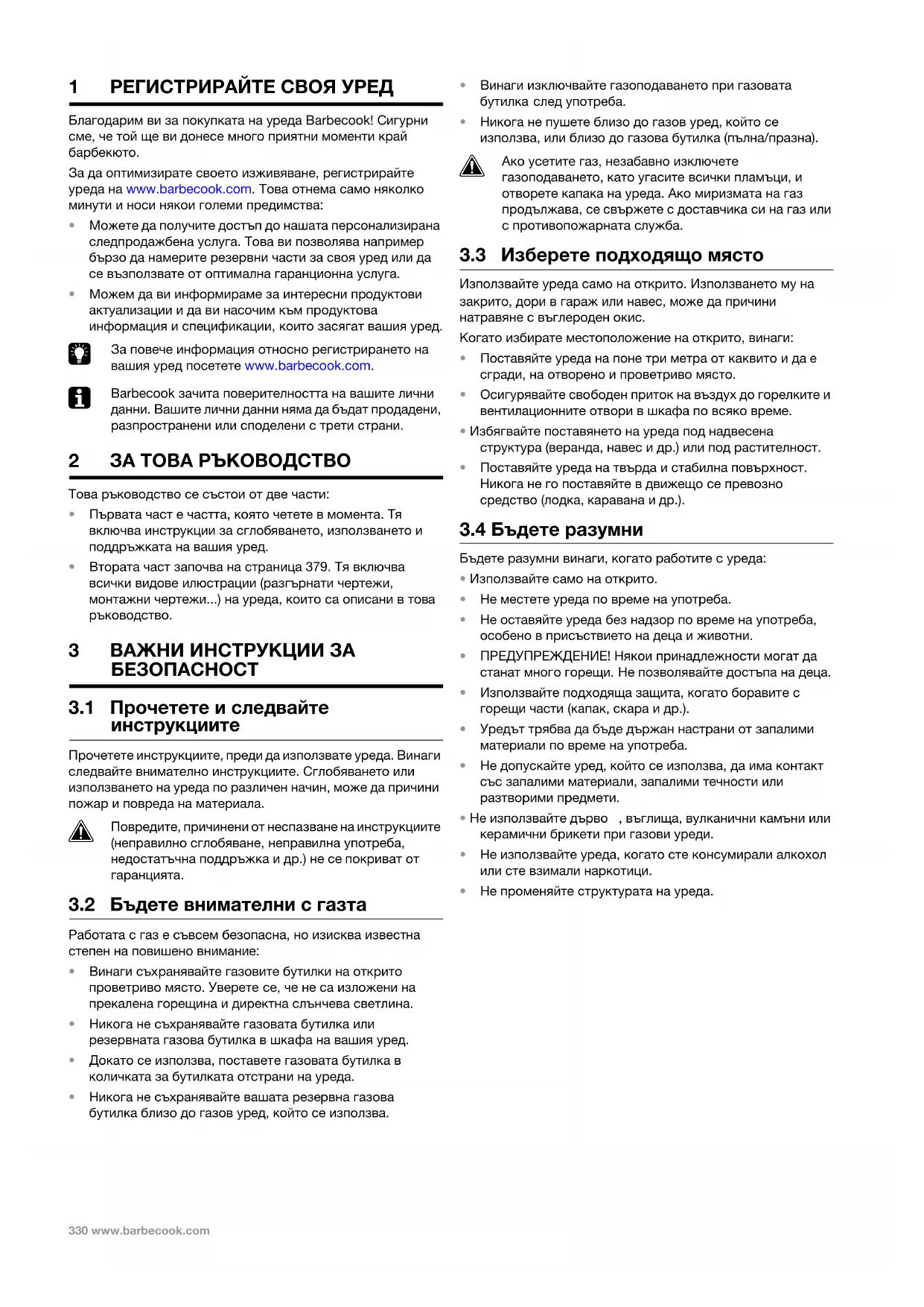 Barbecook зачита поверителността на вашите лични данни. Вашите лични данни няма да бъдат продадени, разпространени или споделени с трети страни. 2 ЗА ТОВА РЪКОВОДСТВО Това ръководство се състои от две части: