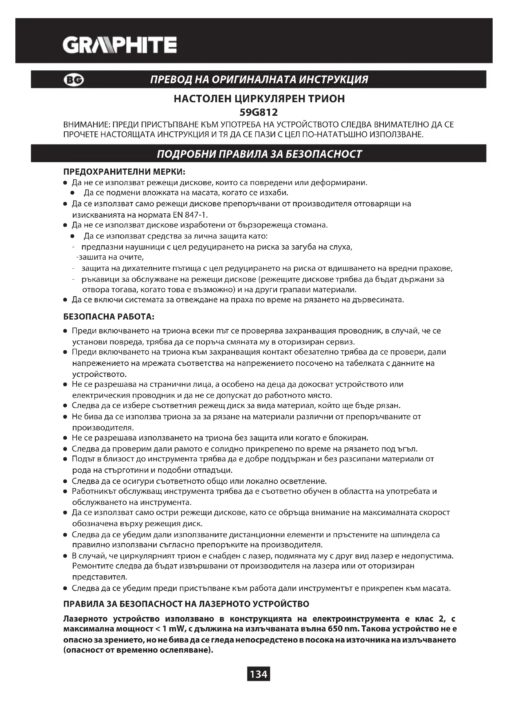 59G812 - Трион Graphite - Безплатно ръководство за потребителя