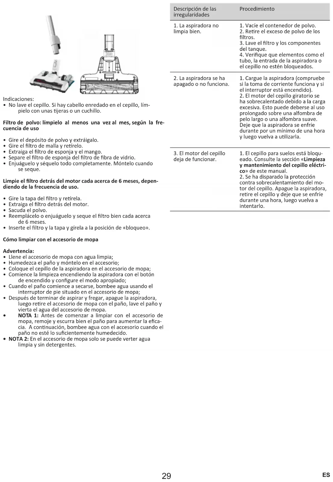- Не мийте четката. Ако в четката са се заплели коси, почис- тете я в помощта на ножица или нож. Филтър за прах - почиствайте поне веднъж месечно, в зависи- мост от честотата на употреба
