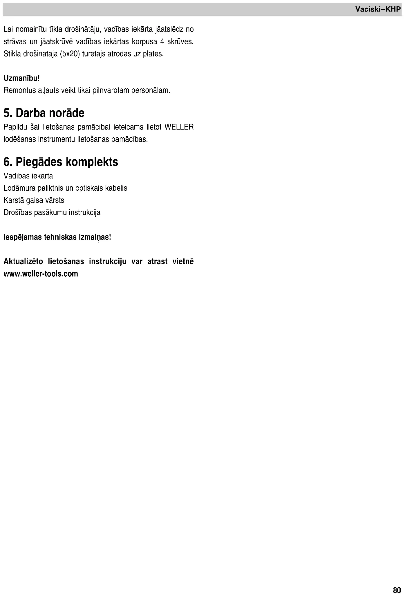 Ръководствата за работа на използваните поялни инструменти на Weller важат като допълнение към това ръководство за работа.