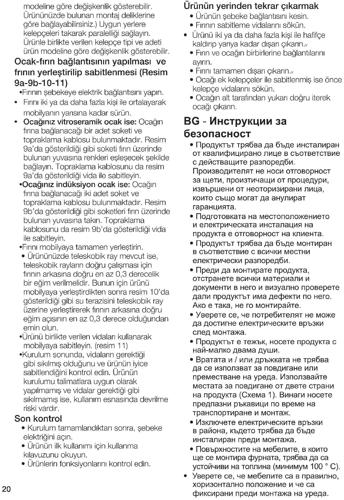 - В края на инсталацията проверете дали винтовете са добре затегнати и дали продуктът е здраво фиксиран. Ако фурната не е монтирана в съответствие с инструкциите и винтовете не са добре затегнати, съществува риск от преобръщане по време на употреба. Последна проверка