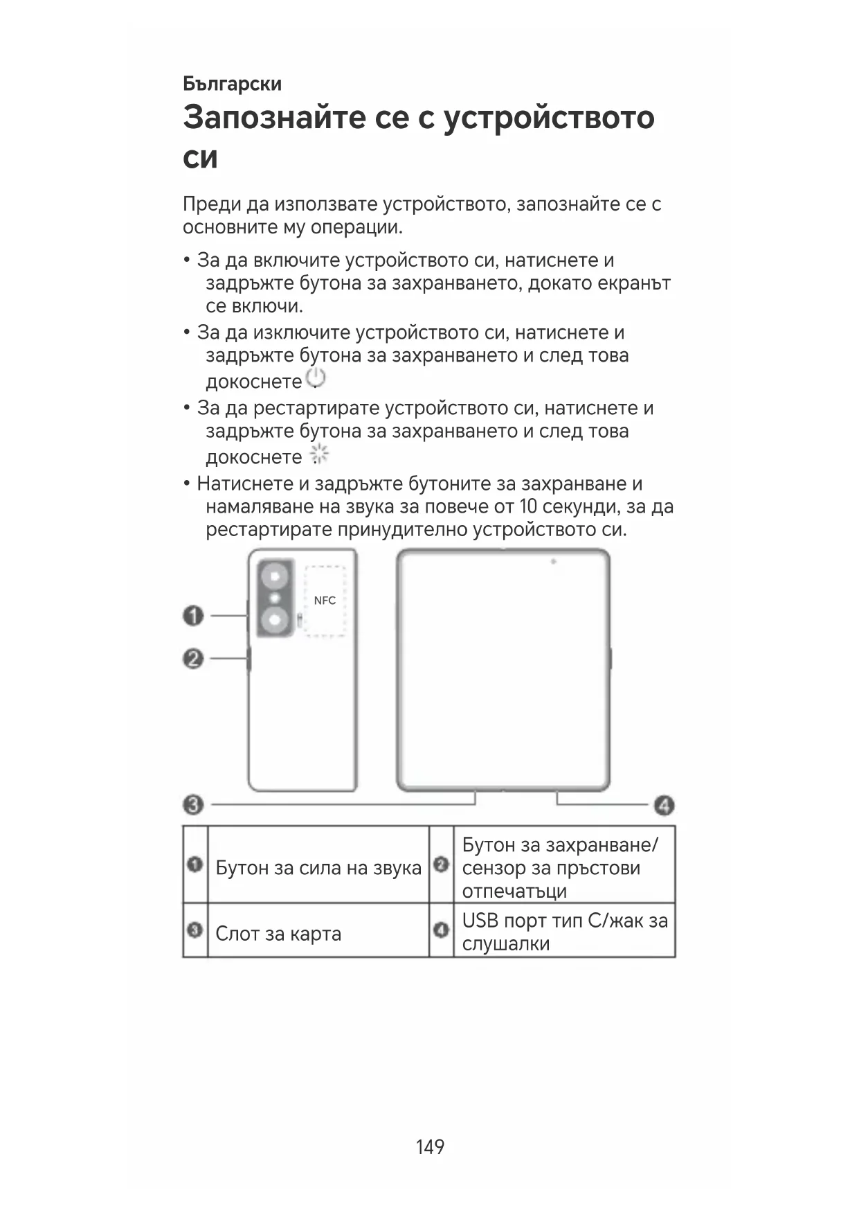 149• Имайте предвид, че зоната за NFC трябва да е в близост до други устройства или обекти при използване на функцията за NFC.