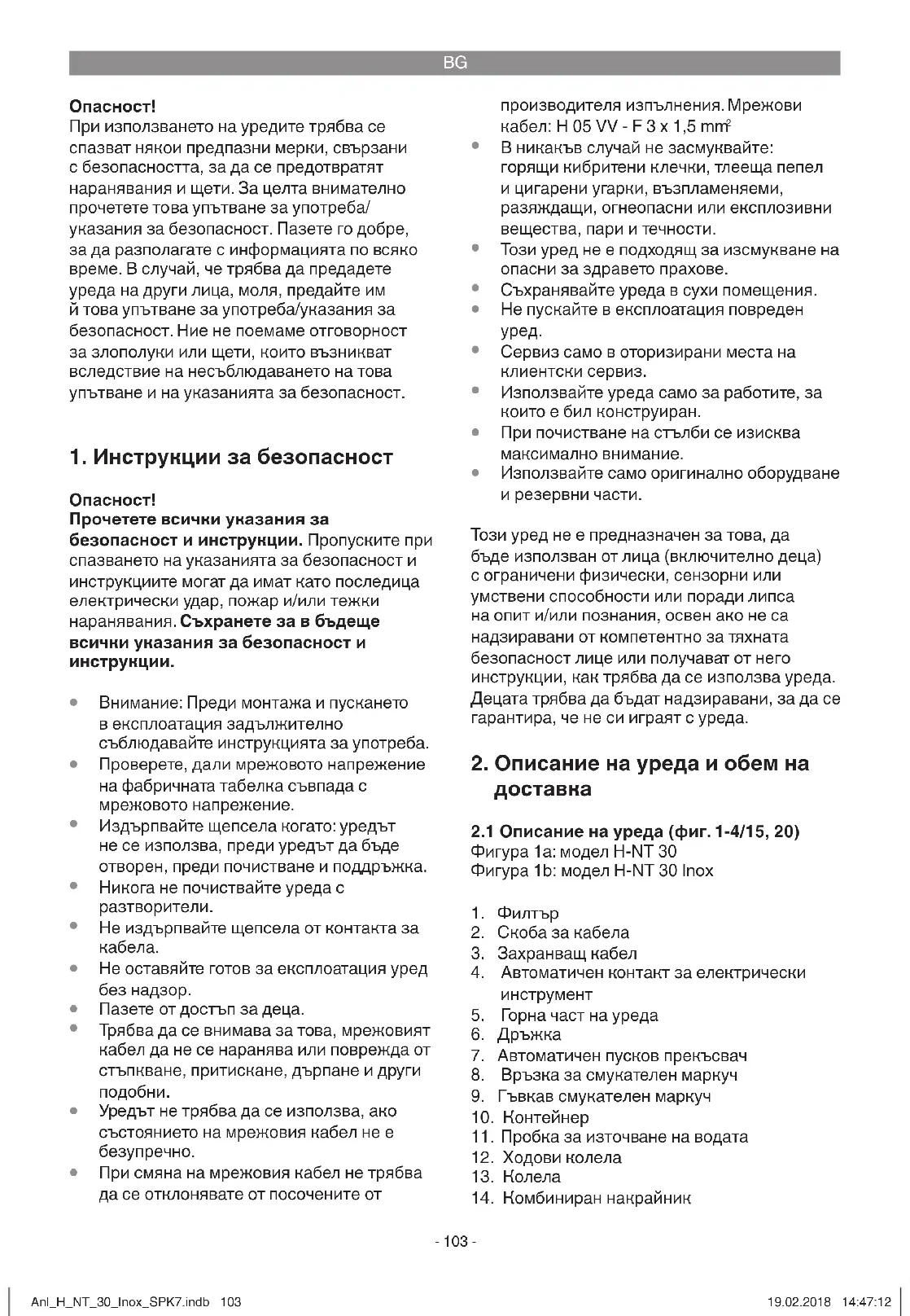 Запазено е правото за извършване на технически промени Anl_H_NT_30_Inox_SPK7.indb 109Anl_H_NT_30_Inox_SPK7.indb 109 19.02.2018 14:47:1319.02.2018 14:47:13BG