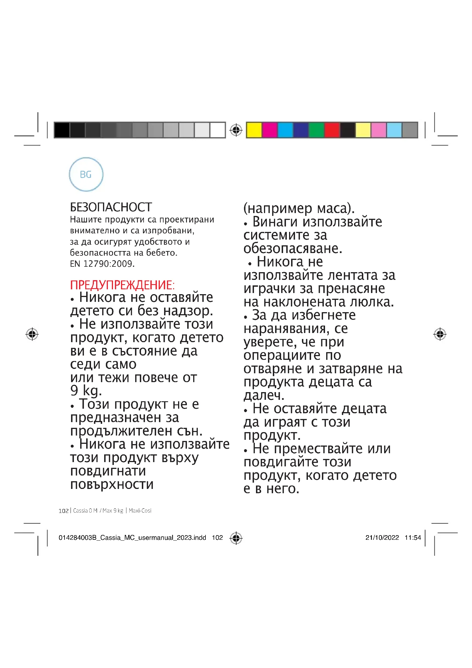 Maxi-Cosi БЕЗОПАСНОСТ Нашите продукти са проектирани внимателно и са изпробвани, за да осигурят удобството и безопасността на бебето. EN 12790:2009. ПРЕДУПРЕЖДЕНИЕ: