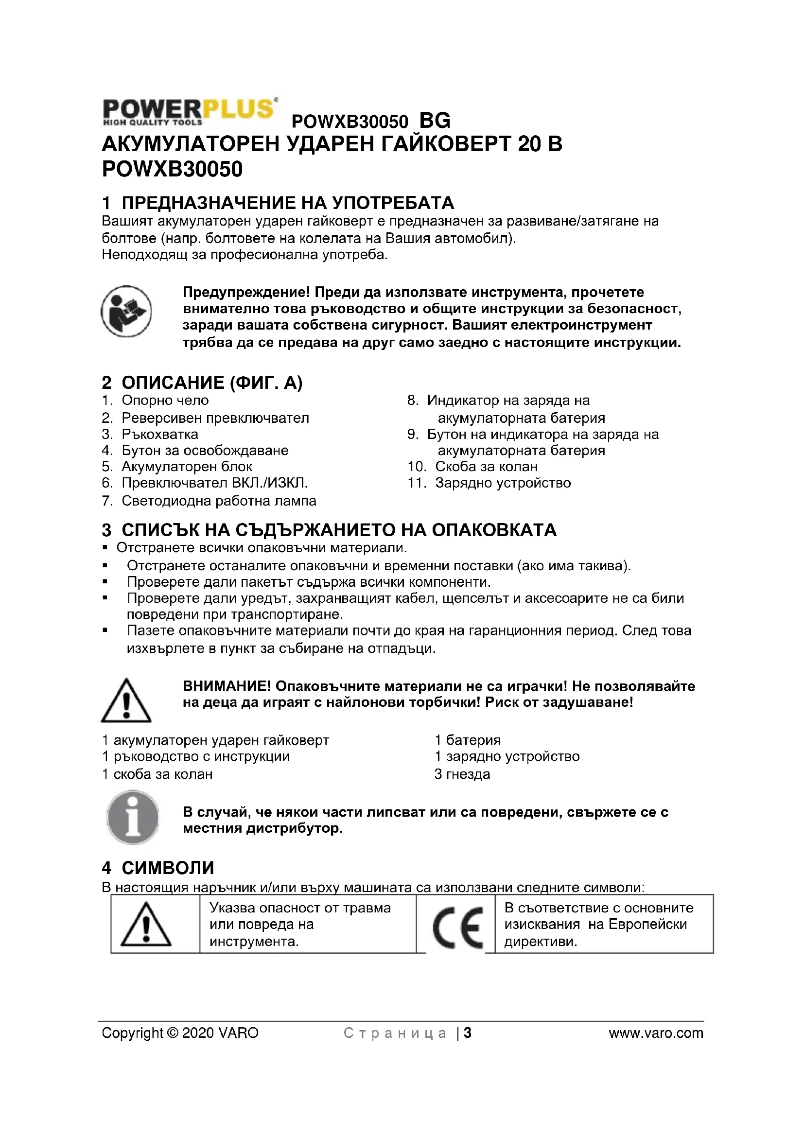 В съответствие с основните изисквания на Европейски директиви.POWXB30050 BG Copyright © 2020 VARO С т р а н и ц а | 4 www.varo.com