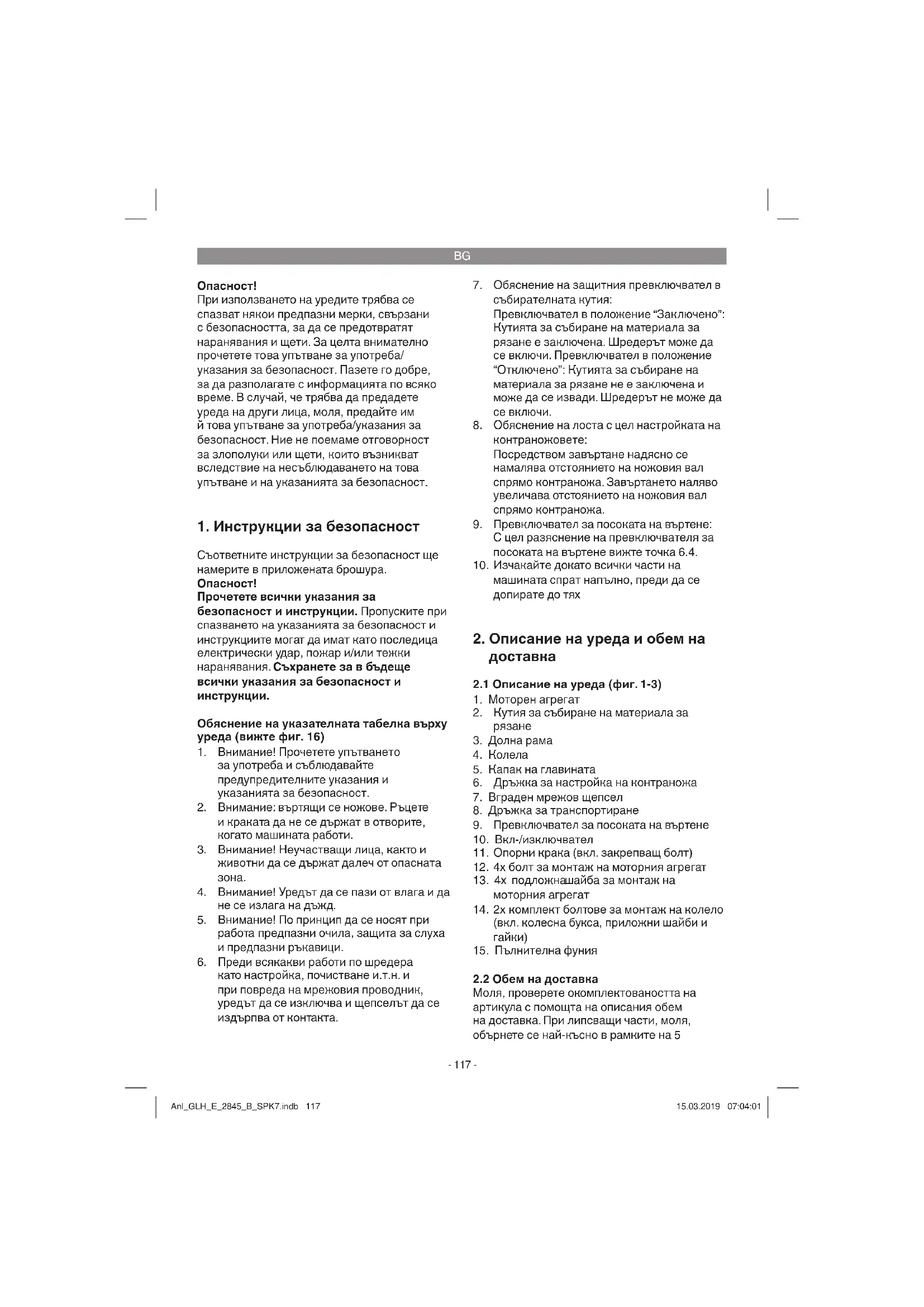 Моля, проверете окомплектоваността на артикула с помощта на описания обем на доставка. При липсващи части, моля, обърнете се най-късно в рамките на 5 Anl_GLH_E_2845_B_SPK7.indb 117Anl_GLH_E_2845_B_SPK7.indb 117 15.03.2019 07:04:0115.03.2019 07:04:01BG