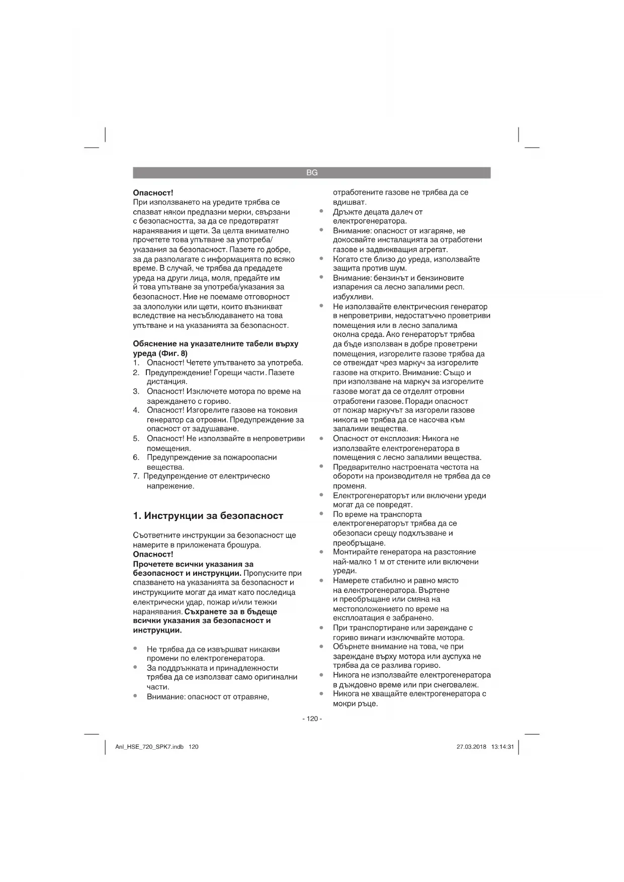 на съмнение, попитайте оторизиран търговец на съответния уред. Машината трябва да се използва само по предназначението й. Всяка по-нататъшна извън това употреба не е по предназначение. За предизвикани от това щети или наранявания от всякакъв вид отговорност носи потребителят/обслужващото лице, а не производителят. Anl_HSE_720_SPK7.indb 122Anl_HSE_720_SPK7.indb 122 27.03.2018 13:14:3227.03.2018 13:14:32BG