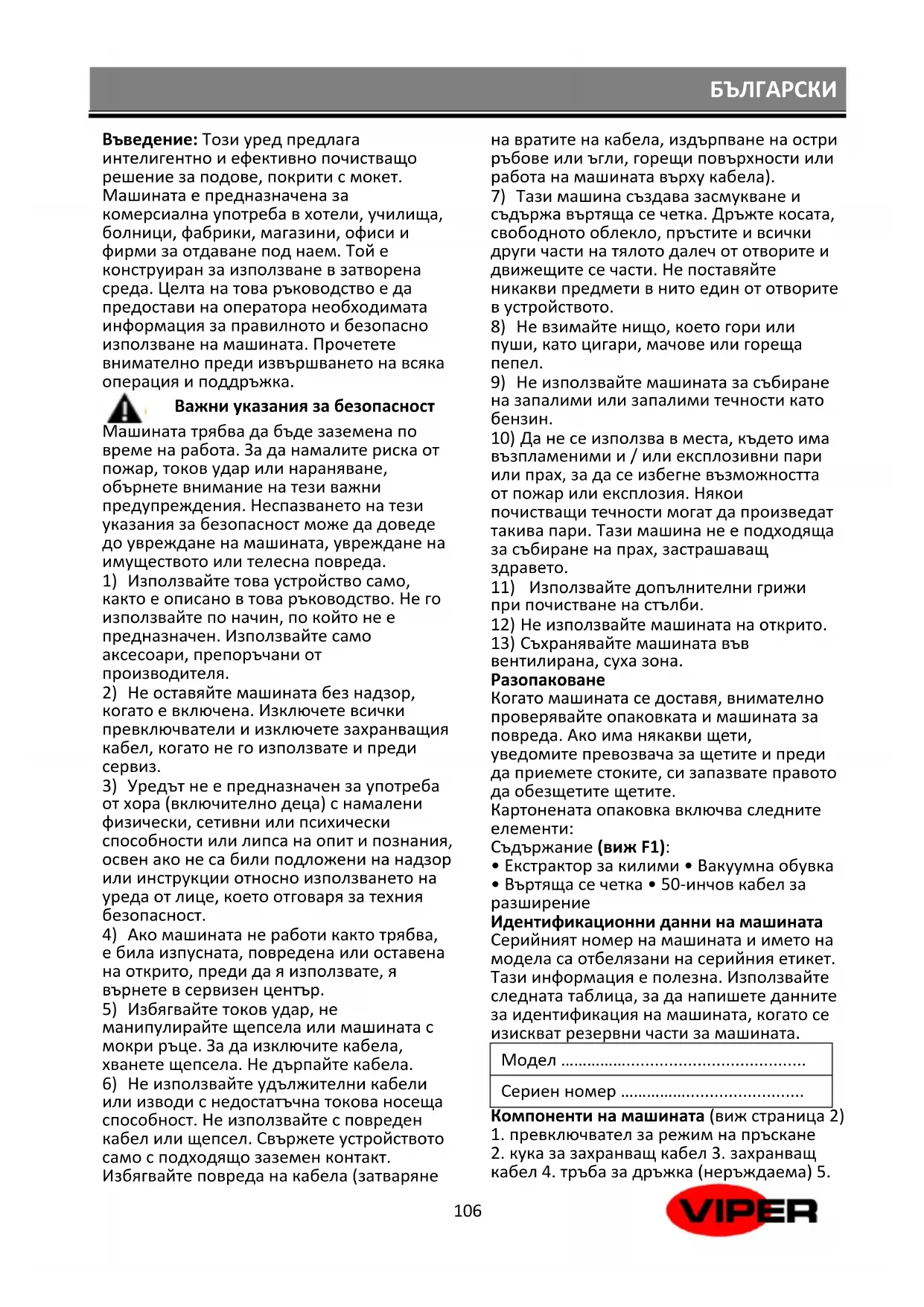 РЪКОВОДСТВО ЗА ПОТРЕБИТЕЛЯ Viper CEX410 NILFISK