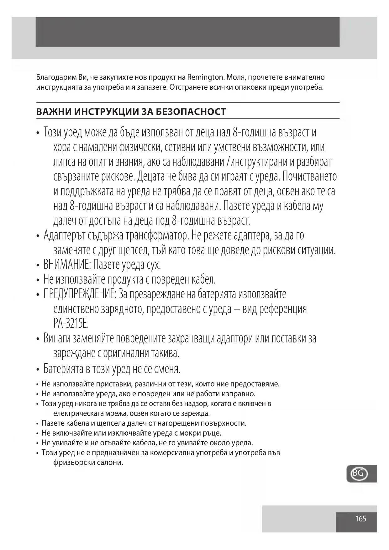 РЪКОВОДСТВО ЗА ПОТРЕБИТЕЛЯ G4 Graphite PG4005 REMINGTON