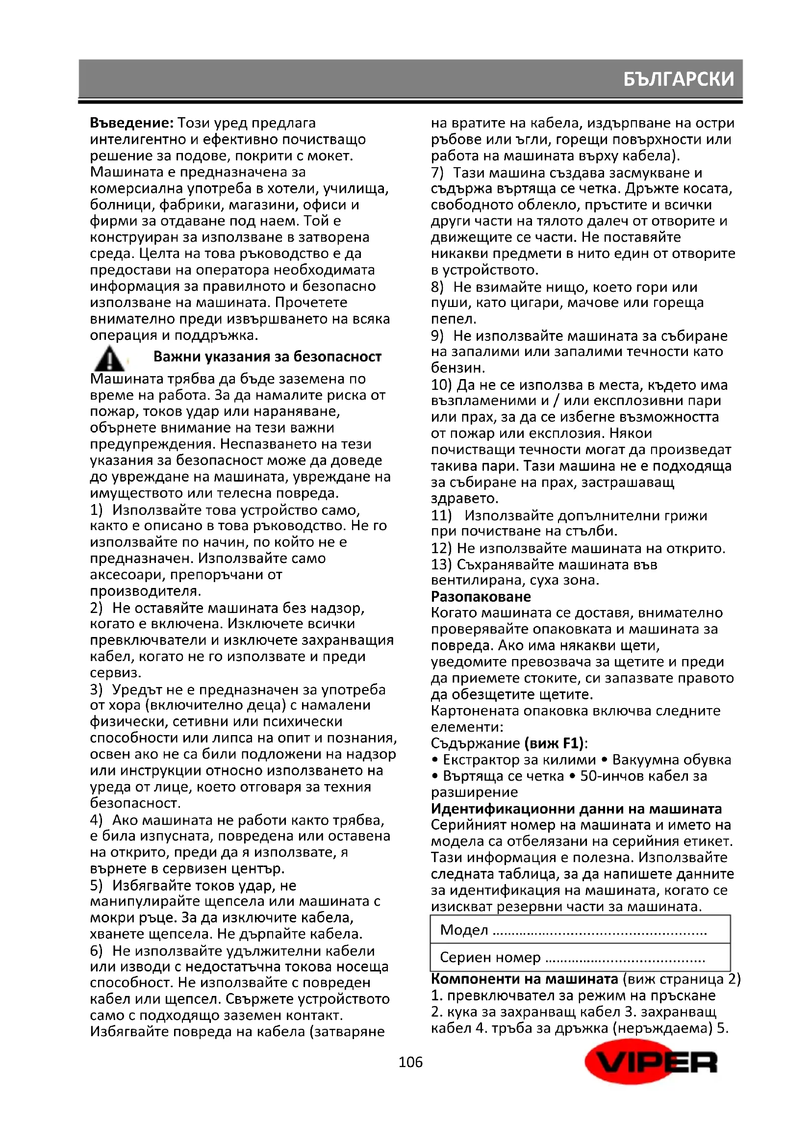 CEX410 - Прахосмукачка Viper - Безплатно ръководство за потребителя