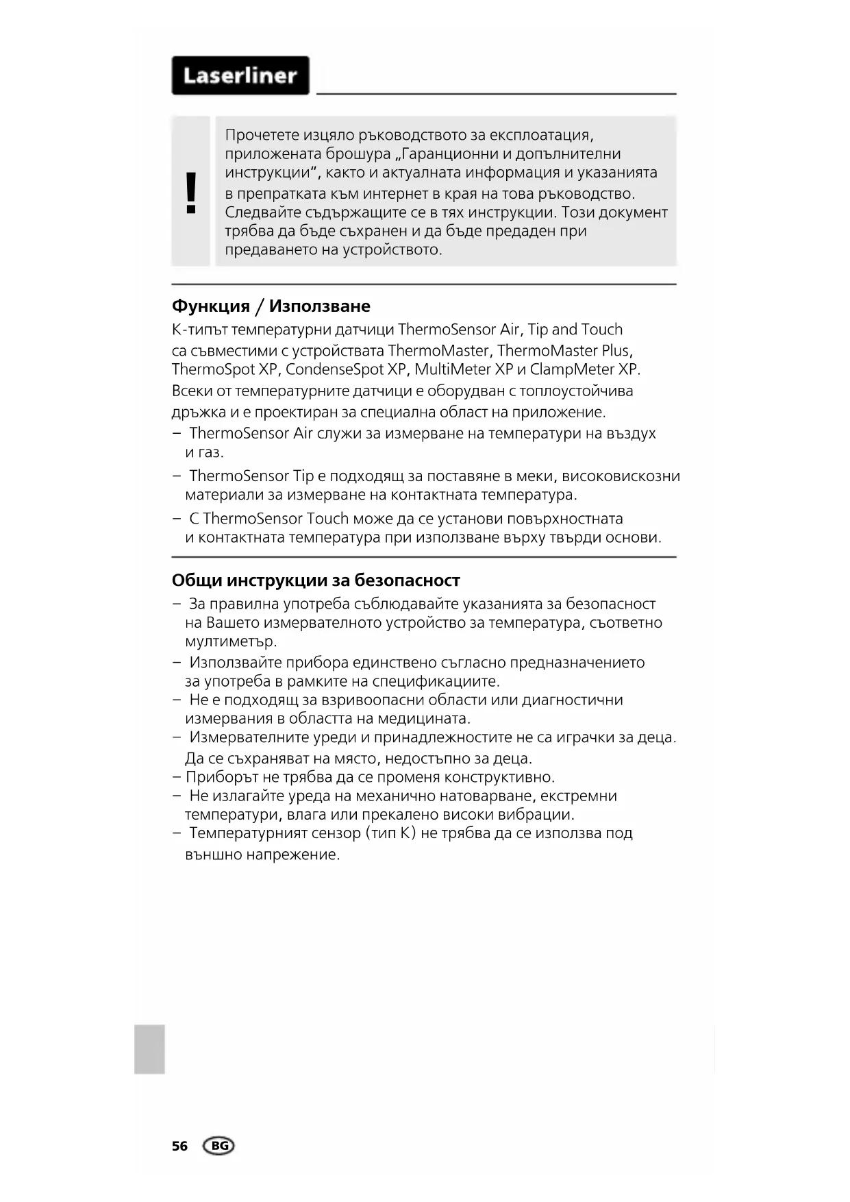 РЪКОВОДСТВО ЗА ПОТРЕБИТЕЛЯ ThermoSensor Air Laserliner